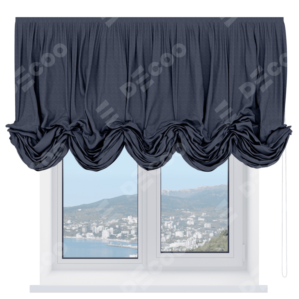 Австрийская штора производителя «Cortin», используется для проёма, пошита из ткани софт однотонный графит, артикул ткани 19316. Имеет универсальный механизм и подходит для монтажа: на потолок и на стену.