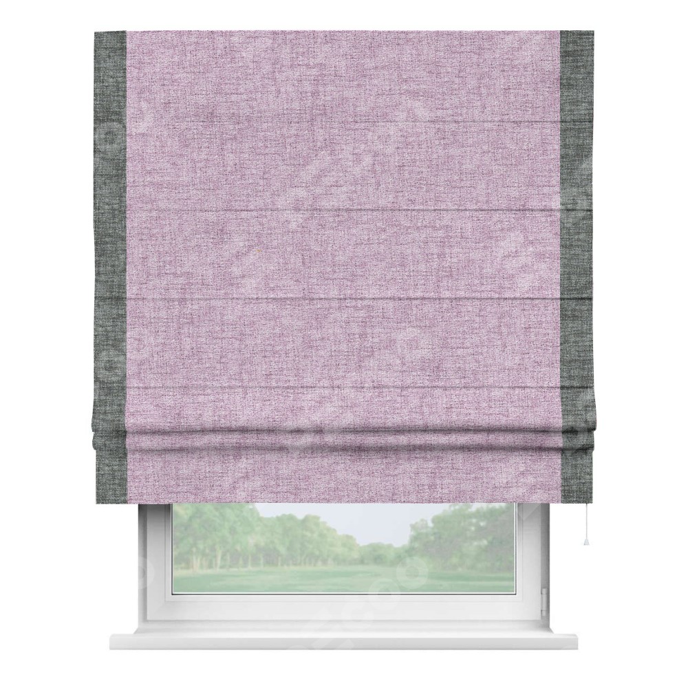 Римская штора «Кортин» для проёма, рогожка димаут розовый, с кантом Стрим Дуо