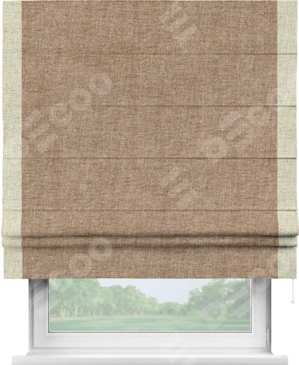 Римская штора «Кортин» для проёма, рогожка димаут светло-коричневый, с кантом Стрим Дуо