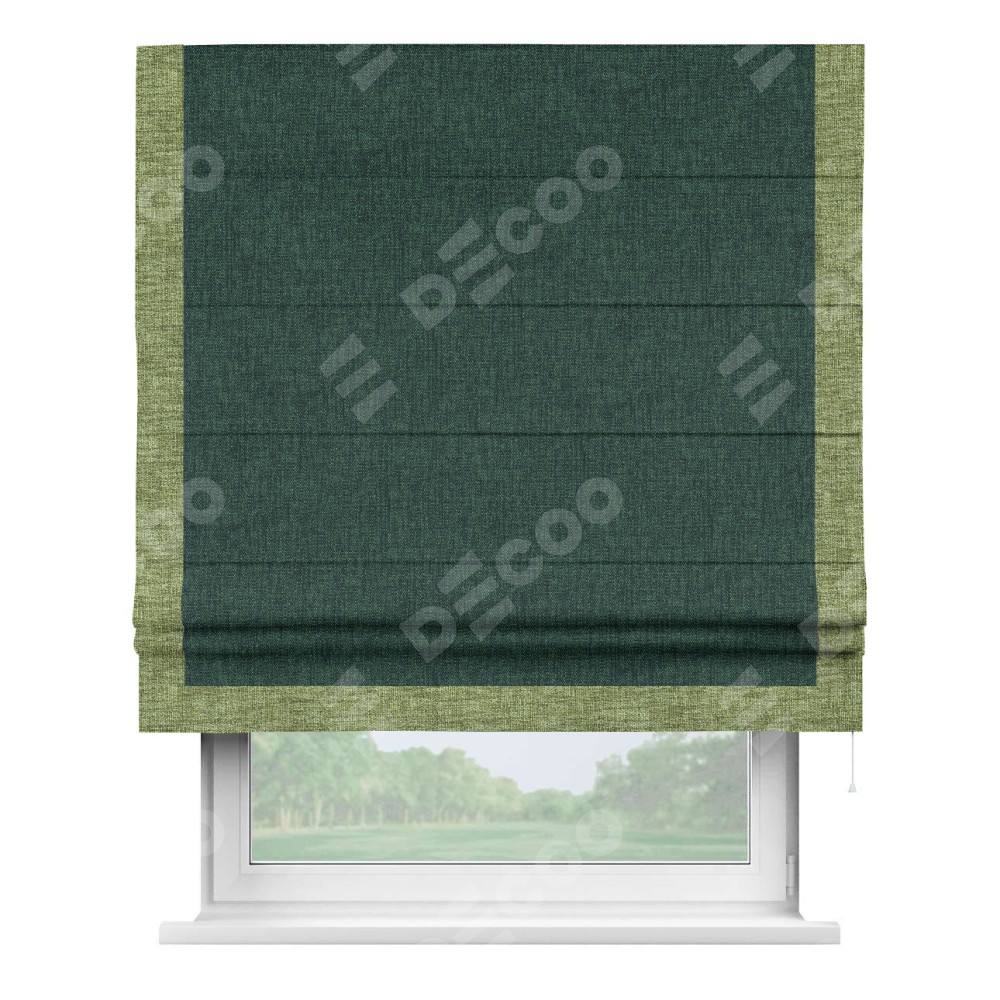 Римская штора «Кортин» для проёма, рогожка димаут тёмно-зелёный, с кантом Виктория