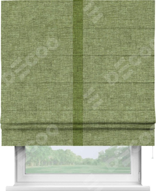 Римская штора «Кортин» для проёма, рогожка димаут травяной, с кантом Хайвэй