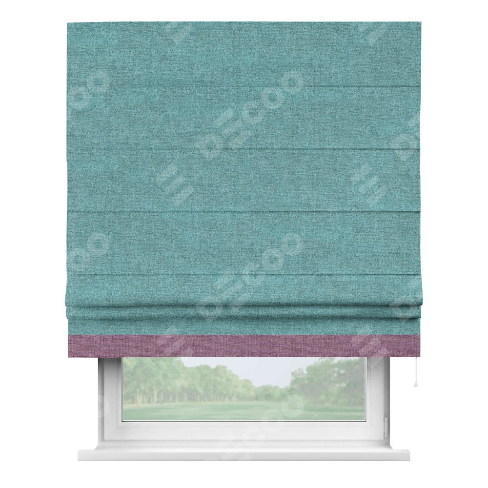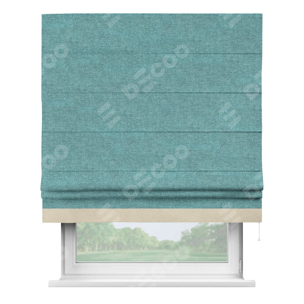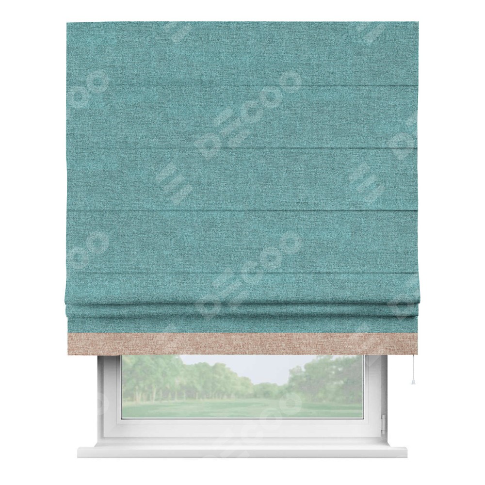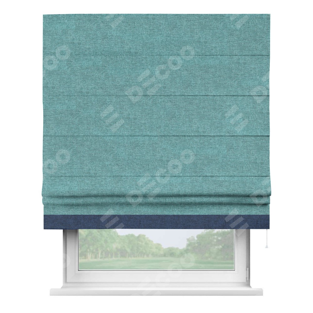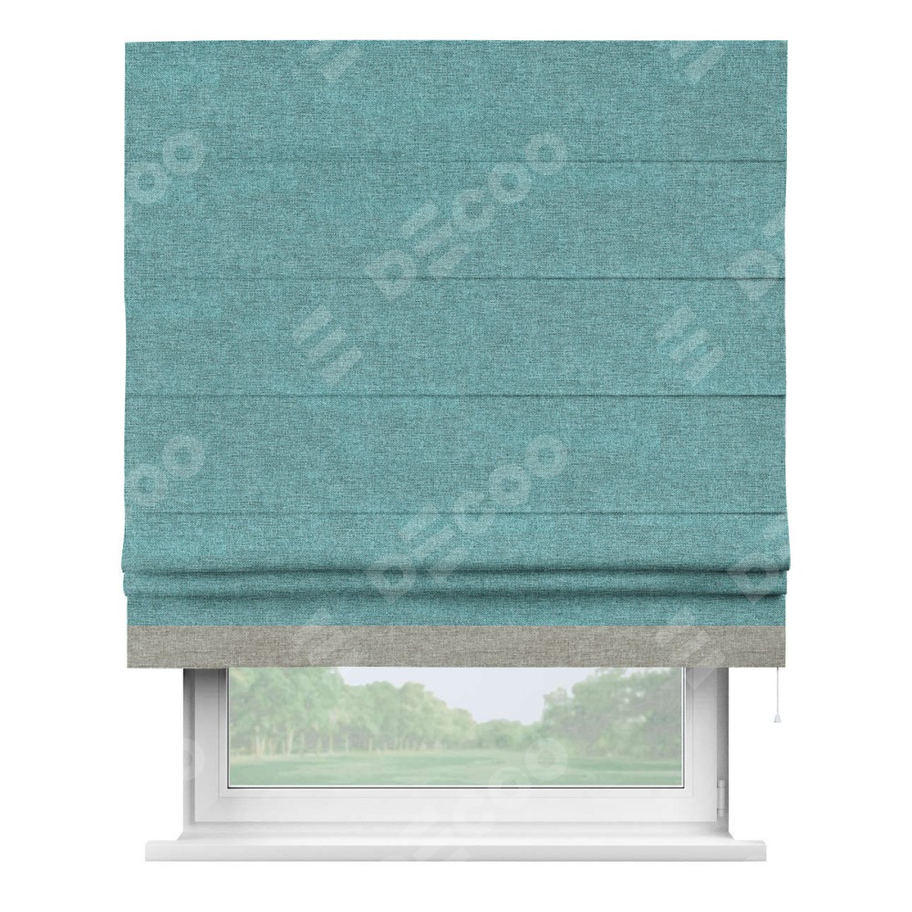 Римская штора «Кортин» с кантом Джестер, для проема, ткань лён кашемир бирюзовый