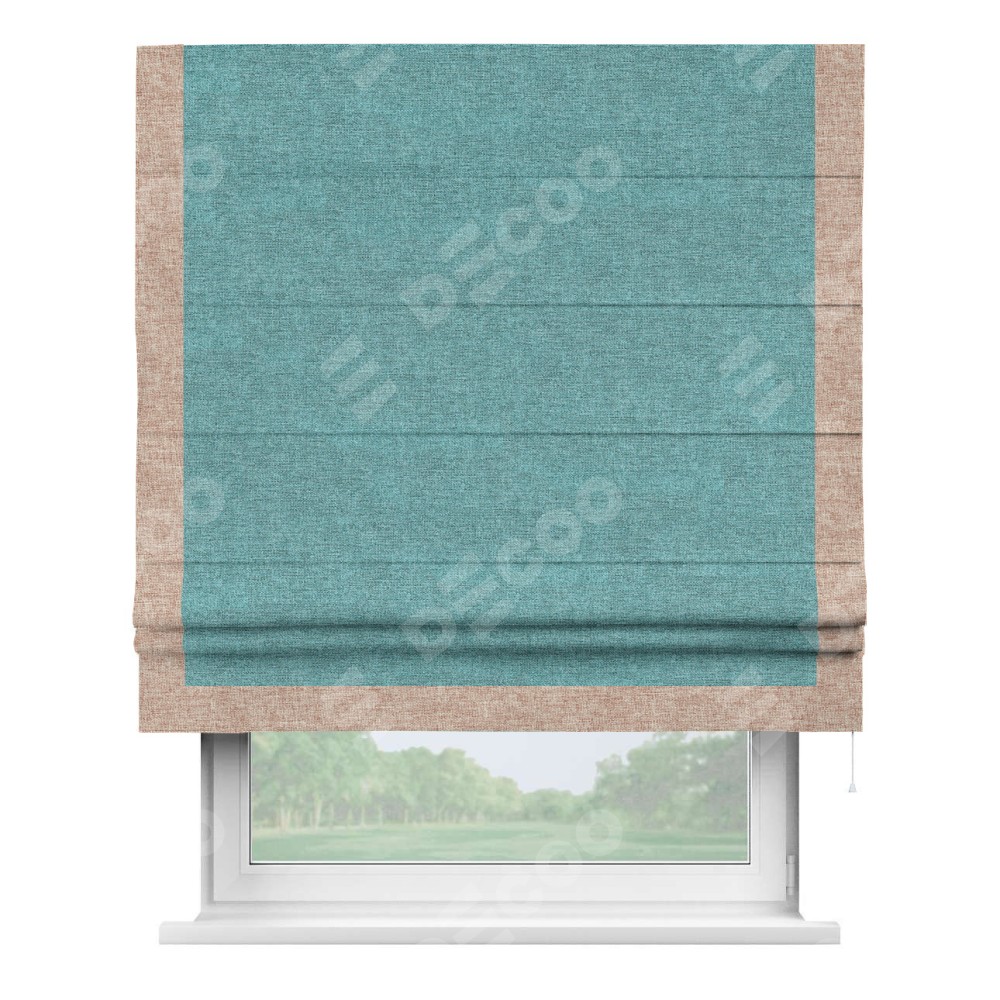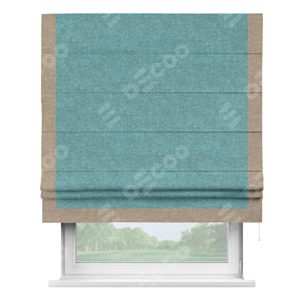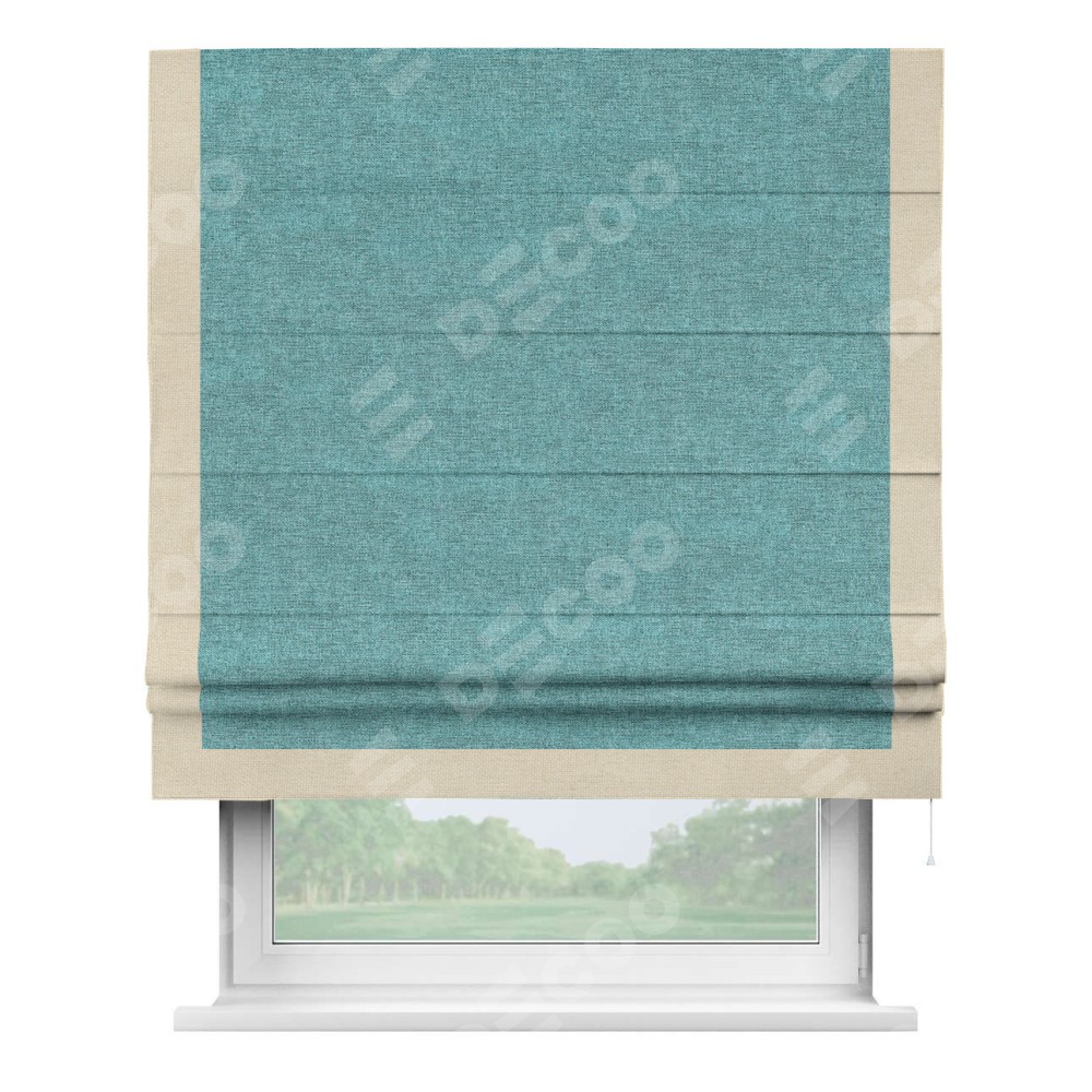 Римская штора «Кортин» с кантом Виктория, для проема, ткань лён кашемир бирюзовый