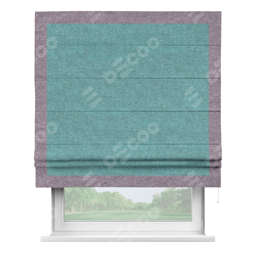 Римская штора «Кортин» с кантом Чесс, для проема, ткань лён кашемир бирюзовый