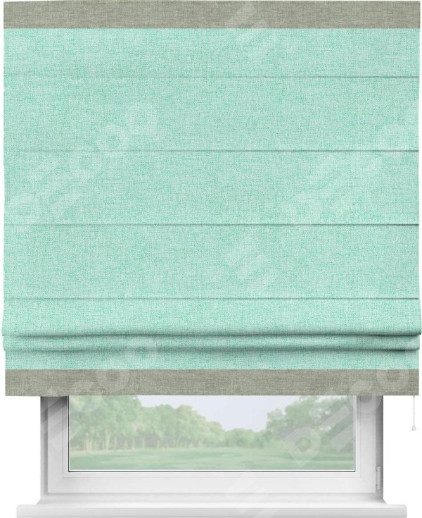 Римская штора «Кортин» для проёма, лён кашемир мятный, с кантом Горизонт