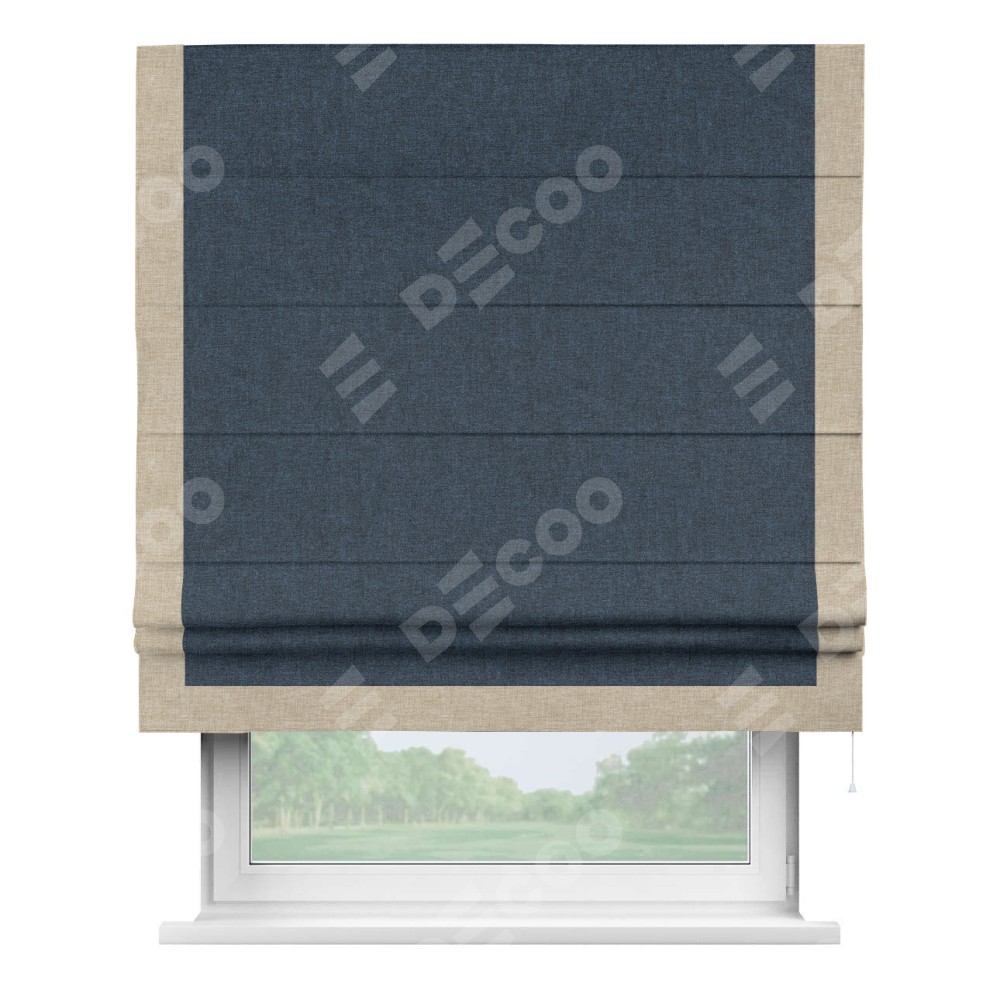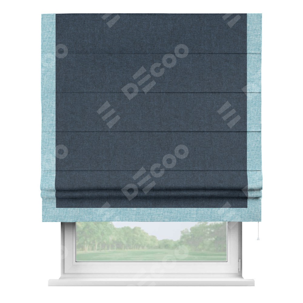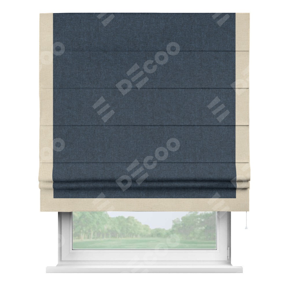 Римская штора «Кортин» для проёма, лён кашемир синий, с кантом Виктория