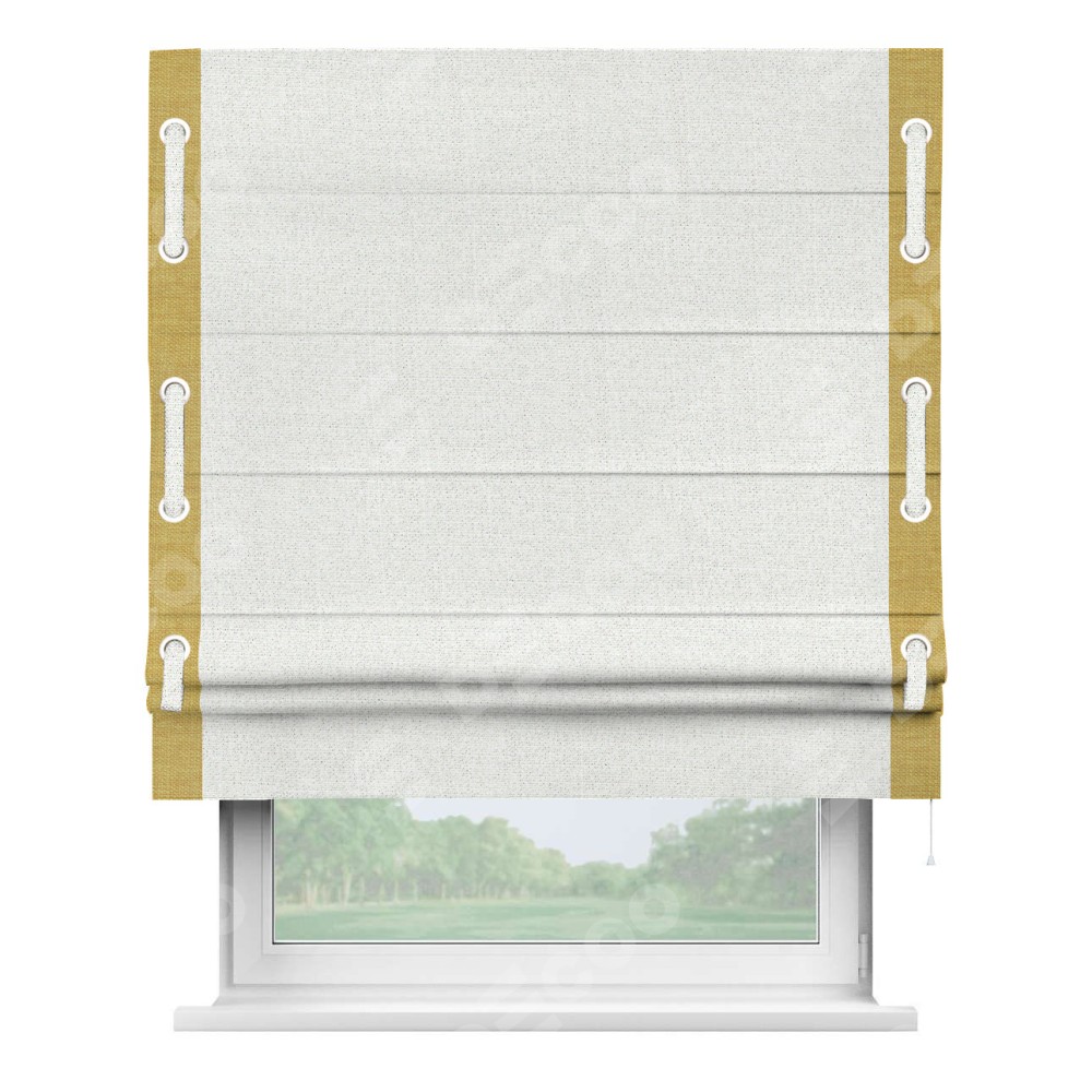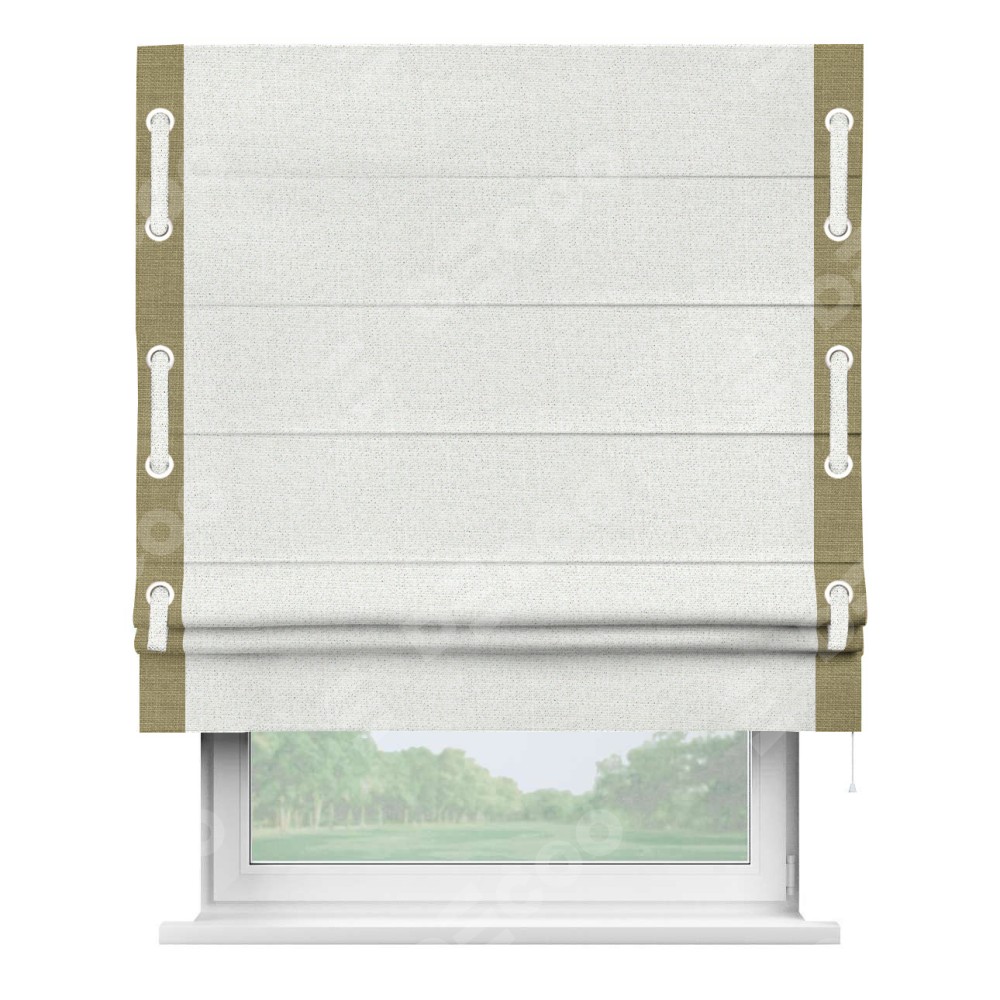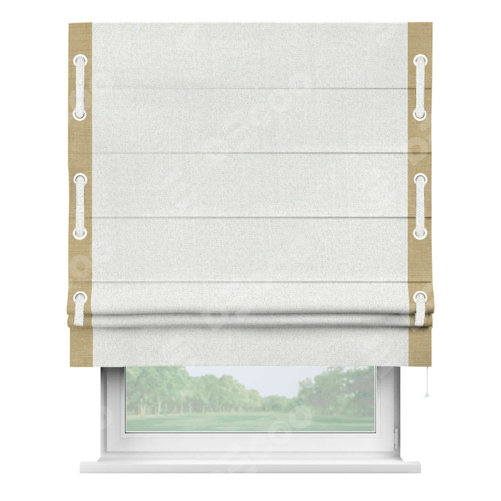 Римская штора «Кортин» для проема, лён шампань, с кантом Стрим Дуо (люверсы с пояском)