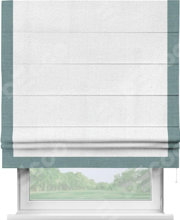 Римская штора «Кортин» для проема, лён белоснежный, с кантом Виктория