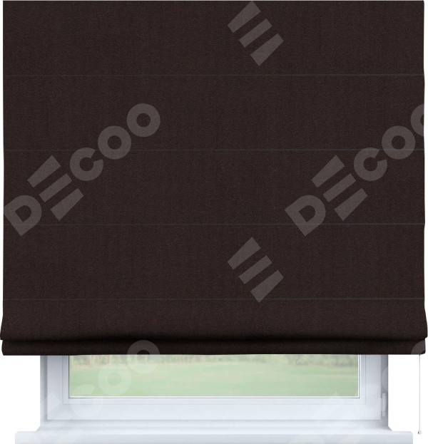Классическая римская штора производителя «Cortin», пошита из ткани лён димаут венге, артикул: 91001. Имеет универсальный механизм и подходит для монтажа: на потолок, на стену и в нишу.