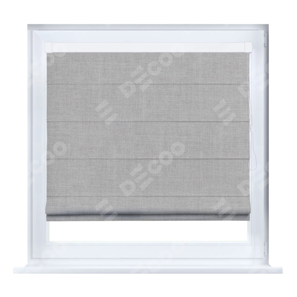 Римская штора производителя «Cortin», устанавливается на створку окна, пошита из ткани лён серый, артикул 91410. Штора шьётся по индивидуальным размерам, для данного типа римской шторы возможная ширина от 35 до 150 см., высота до 250 см.
