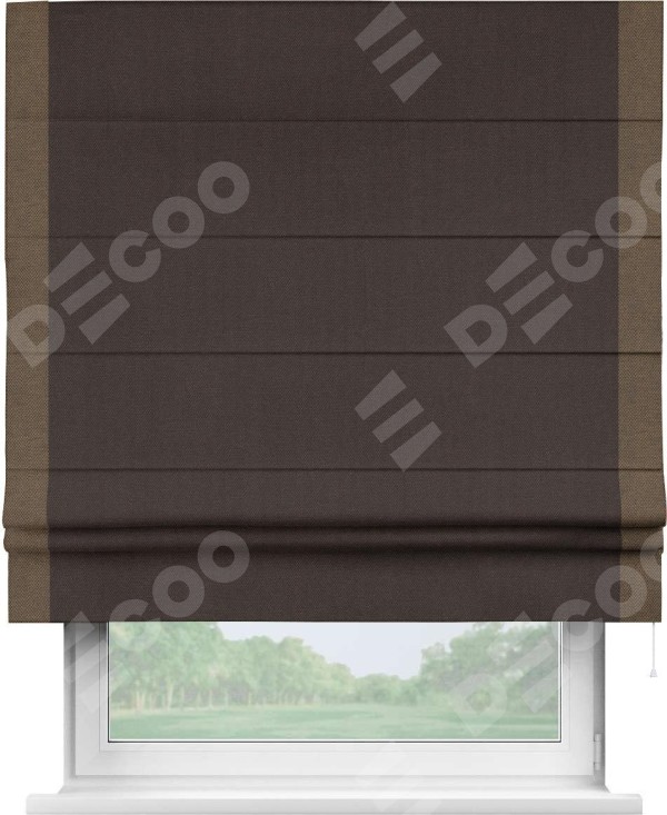Римская штора «Кортин» для проема, лён димаут венге с кантом Стрим Дуо