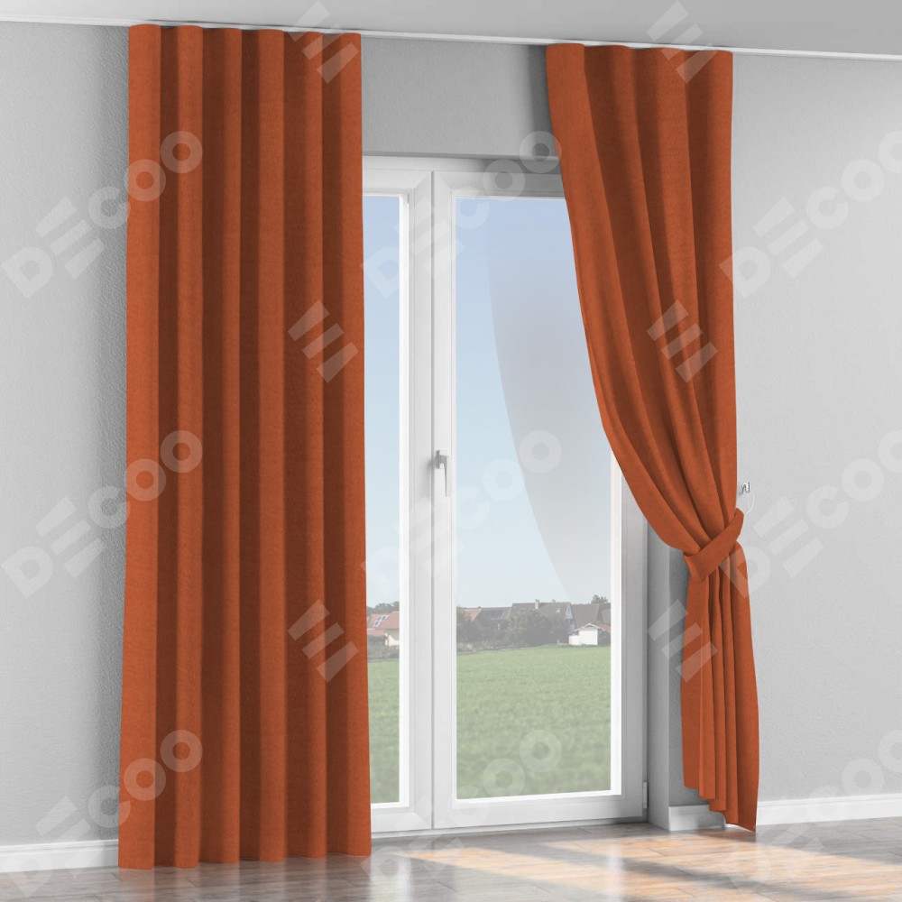 Комплект прямых штор, от производителя «Cortin», пошиты из ткани канвас терракотовый, артикул ткани v-107. С изнаночной стороны в верхней части штор пристрачивается шторная лента с декоративными складками «Волна». Для создания элегантных складок рекомендуемый коэффициент 1:2 (на 100 см. ширины проёма 200 см. ширины ткани). Важно! Ширина штор указана без учёта коэффициента сборки!