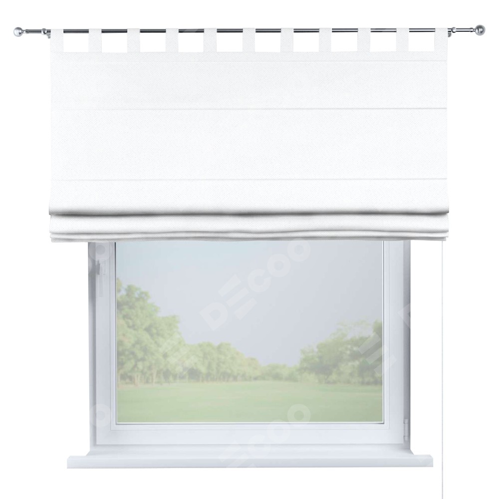 Римская штора производителя «Cortin», используется для проёма, пошита из ткани лён димаут белый, артикул ткани 28. Данная модель пошита на петлях, комплектуется на выбор круглым карнизом и подходит для монтажа на стену. Римская штора на петлях имеет простую систему регулировки высоты, отличительным преимуществом данной модели является простой способ монтажа. Достаточно повесить ее на трубу и штора готова!