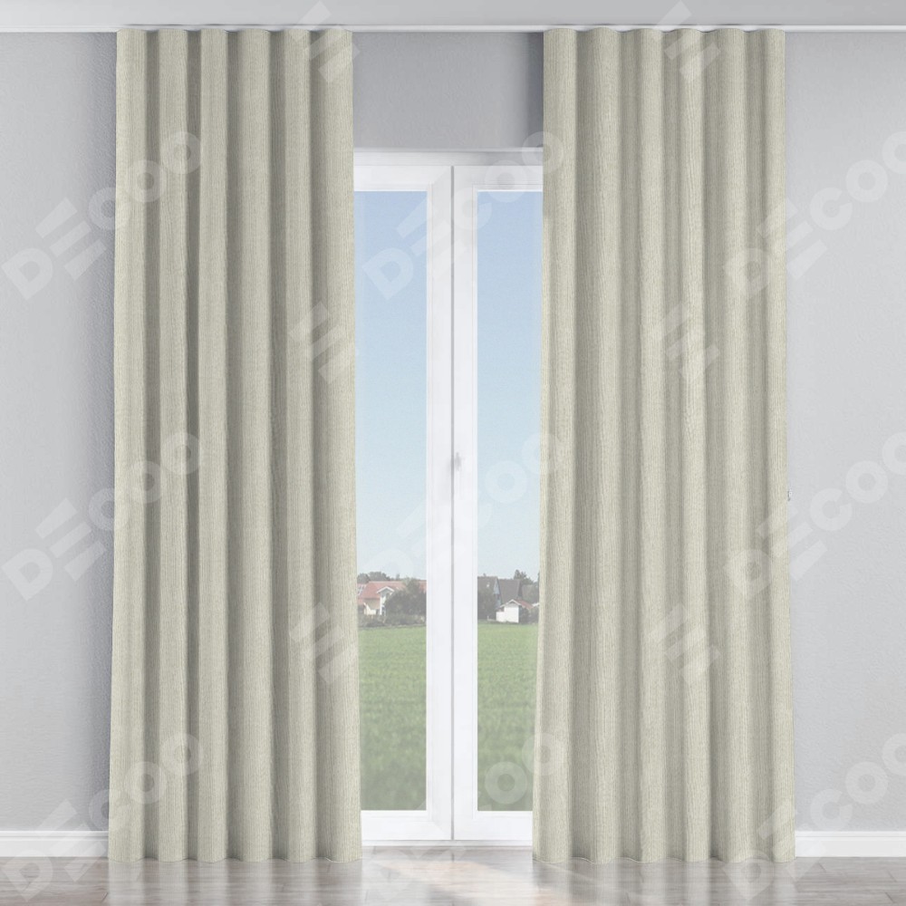 Комплект прямых штор, от производителя «Cortin», пошиты из ткани лён димаут светло-бежевый, артикул ткани 140649. С изнаночной стороны в верхней части штор пристрачивается шторная лента с декоративными складками «Волна». Для создания элегантных складок рекомендуемый коэффициент 1:2 (на 100 см. ширины проёма 200 см. ширины ткани). Важно! Ширина штор указана без учёта коэффициента сборки!