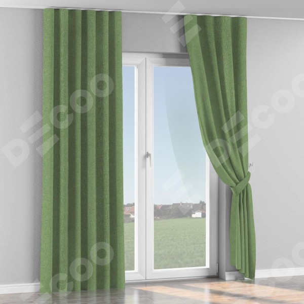 Комплект прямых штор, от производителя «Cortin», пошиты из ткани лён димаут светло-салатовый, артикул ткани 128528. С изнаночной стороны в верхней части штор пристрачивается шторная лента с декоративными складками «Волна». Для создания элегантных складок рекомендуемый коэффициент 1:2 (на 100 см. ширины проёма 200 см. ширины ткани). Важно! Ширина штор указана без учёта коэффициента сборки!