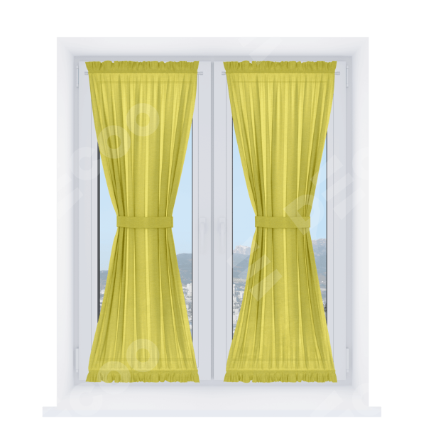 Штора «Песочные часы» производителя «Cortin», используется для створок окон и дверей, пошита из ткани лён салатовый, артикул ткани 53437.