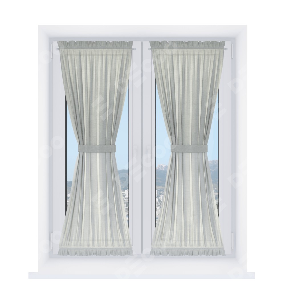 Штора «Песочные часы» производителя «Cortin», используется для створок окон и дверей, пошита из ткани лён серый, артикул ткани 7440.