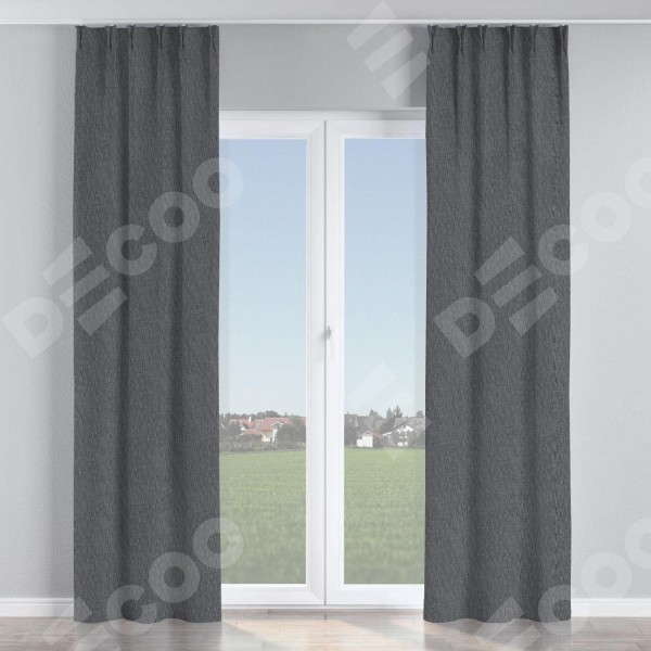 Комплект прямых штор, от производителя «Cortin», пошиты из ткани лён димаут графит, артикул ткани 140644. С изнаночной стороны в верхней части штор пристрачивается шторная лента с декоративными складками «Кустик». Для создания элегантных складок рекомендуемый коэффициент 1:2 (на 100 см. ширины проёма 200 см. ширины ткани). Важно! Ширина штор указана без учёта коэффициента сборки!