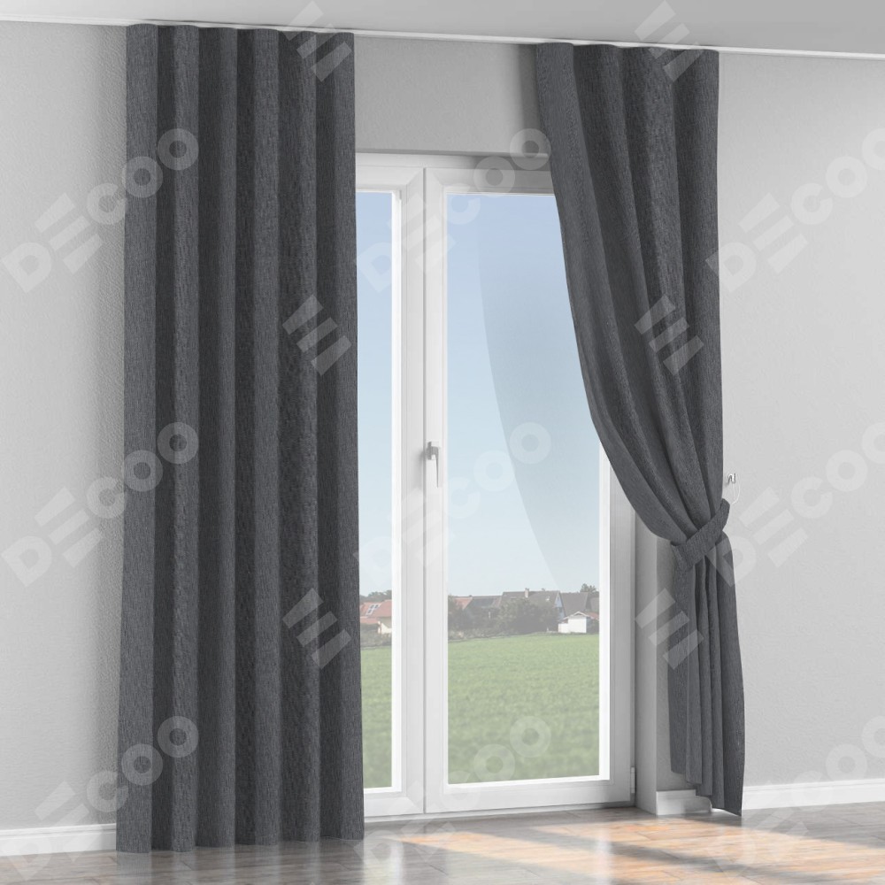 Комплект прямых штор, от производителя «Cortin», пошиты из ткани лён димаут графит, артикул ткани 140644. С изнаночной стороны в верхней части штор пристрачивается шторная лента с декоративными складками «Волна». Для создания элегантных складок рекомендуемый коэффициент 1:2 (на 100 см. ширины проёма 200 см. ширины ткани). Важно! Ширина штор указана без учёта коэффициента сборки!
