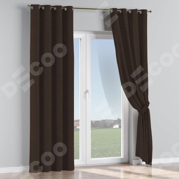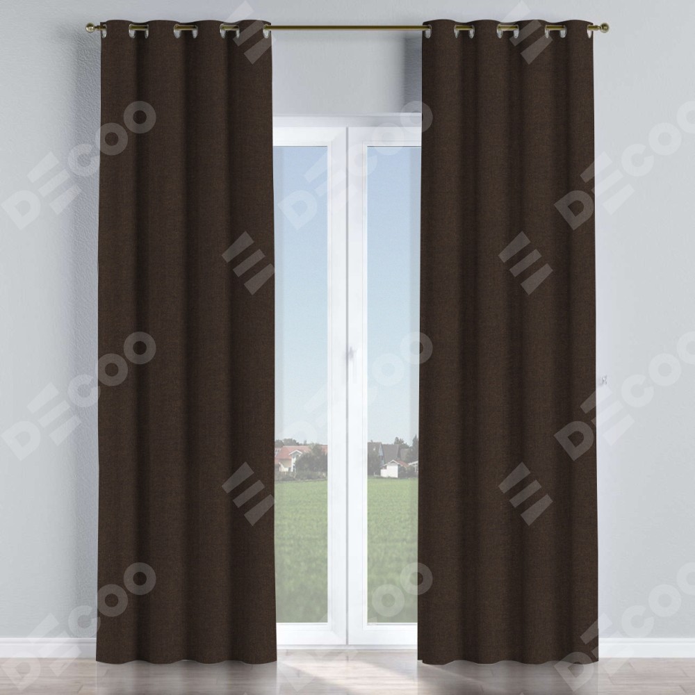 Комплект штор лён тёмно-коричневый, на люверсах