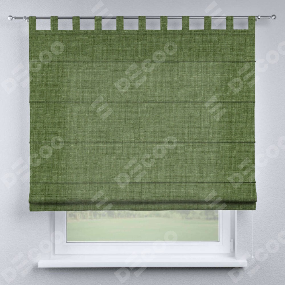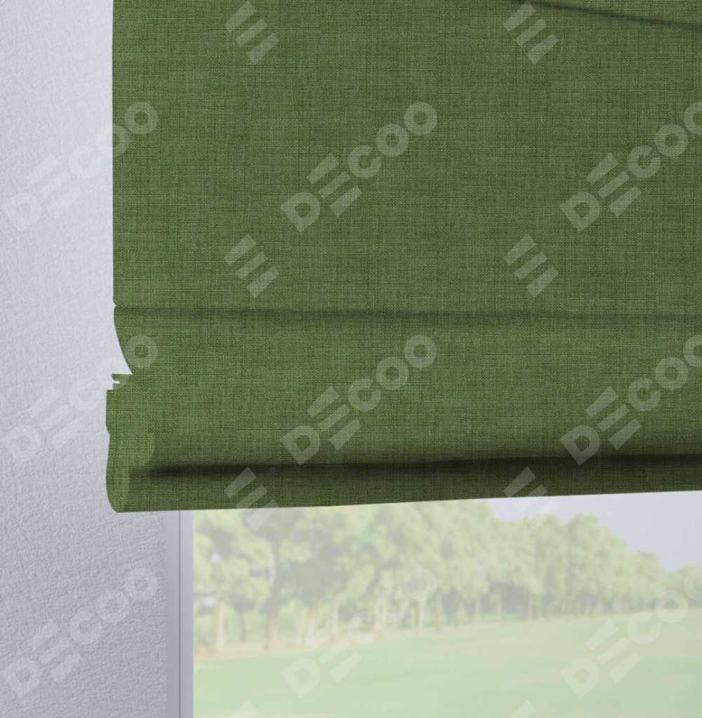 Римская штора производителя «Cortin», используется для проёма, пошита из ткани лён зелёный, артикул ткани 131547. Данная модель пошита на петлях, комплектуется на выбор круглым карнизом и подходит для монтажа на стену. Римская штора на петлях имеет простую систему регулировки высоты, отличительным преимуществом данной модели является простой способ монтажа. Достаточно повесить ее на трубу и штора готова!