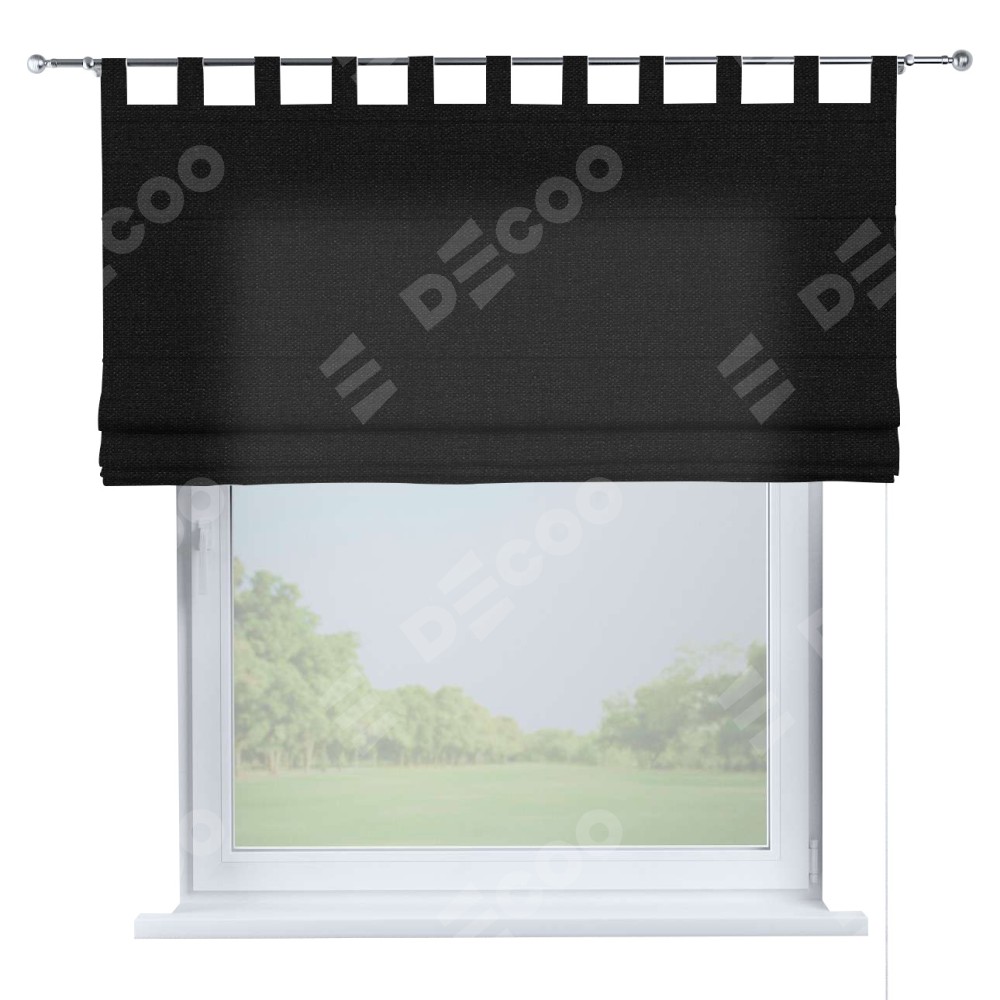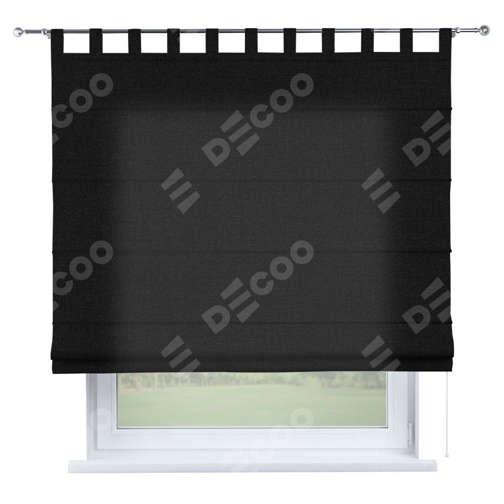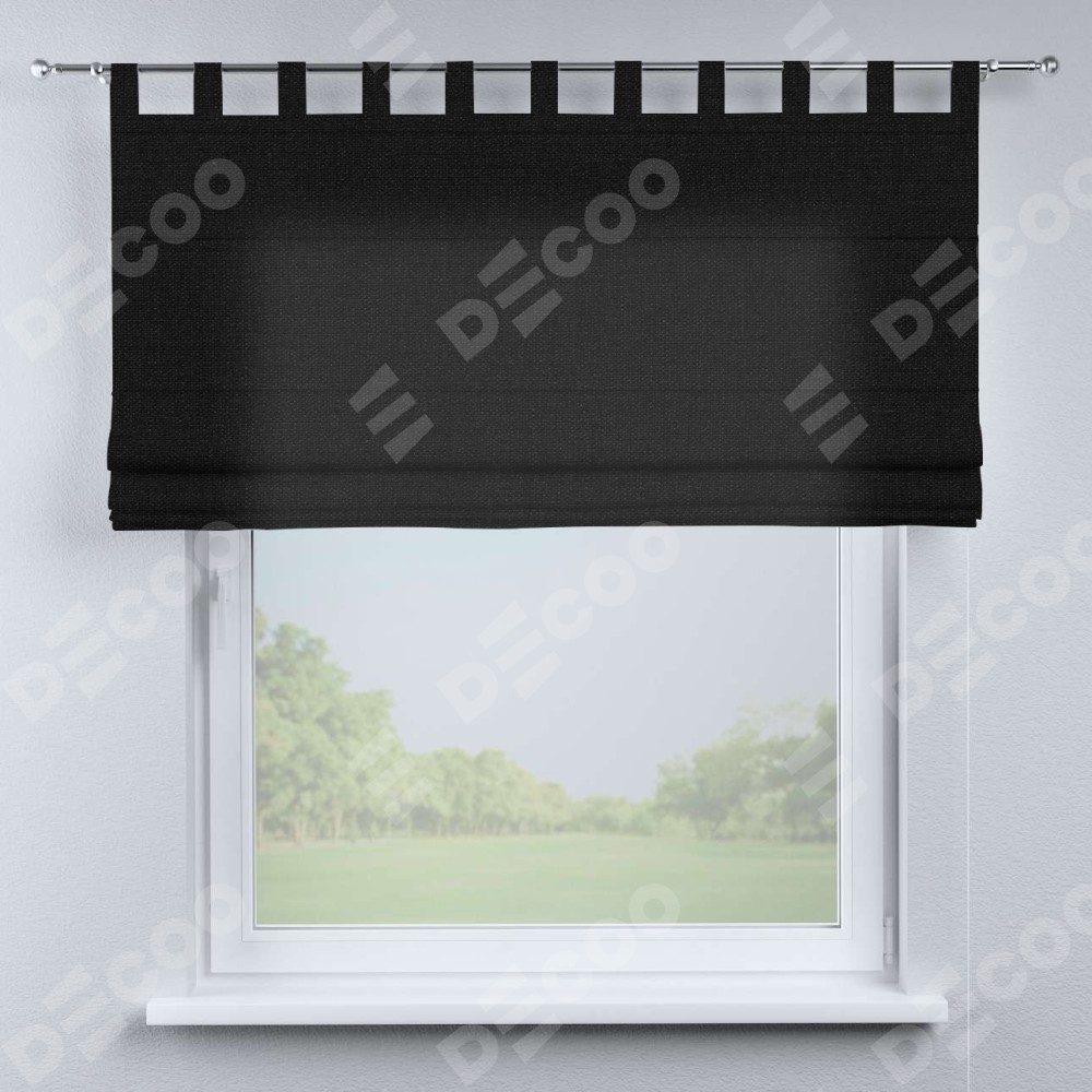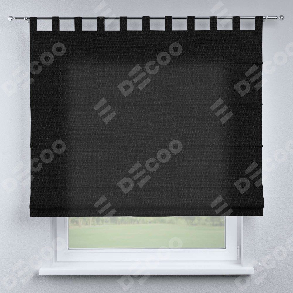 Римская штора «Кортин», лён черный, на петлях