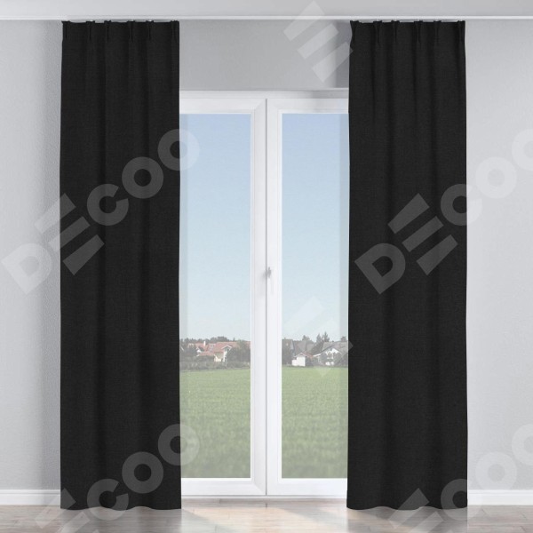 Комплект прямых штор, от производителя «Cortin», пошиты из ткани лён черный, артикул ткани 140815. С изнаночной стороны в верхней части штор пристрачивается шторная лента с декоративными складками «Кустик». Для создания элегантных складок рекомендуемый коэффициент 1:2 (на 100 см. ширины проёма 200 см. ширины ткани). Важно! Ширина штор указана без учёта коэффициента сборки!