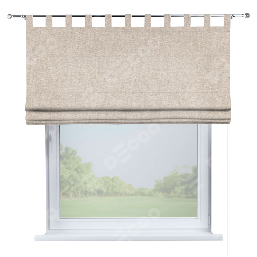 Римская штора производителя «Cortin», используется для проёма, пошита из ткани лён кашемир натуральный беж. Данная модель пошита на петлях, комплектуется на выбор круглым карнизом и подходит для монтажа на стену. Римская штора на петлях имеет простую систему регулировки высоты, отличительным преимуществом данной модели является простой способ монтажа. Достаточно повесить ее на трубу и штора готова!