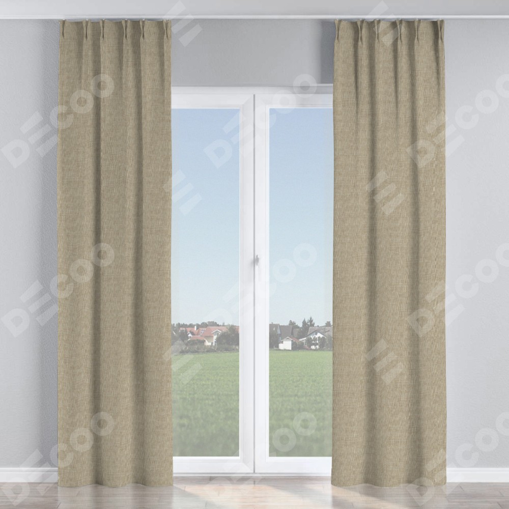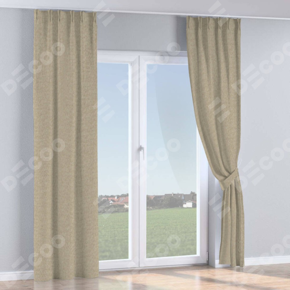 Комплект прямых штор, от производителя «Cortin», пошиты из ткани лён бежевый, артикул ткани 143839. С изнаночной стороны в верхней части штор пристрачивается шторная лента с декоративными складками «Кустик». Для создания элегантных складок рекомендуемый коэффициент 1:2 (на 100 см. ширины проёма 200 см. ширины ткани). Важно! Ширина штор указана без учёта коэффициента сборки!