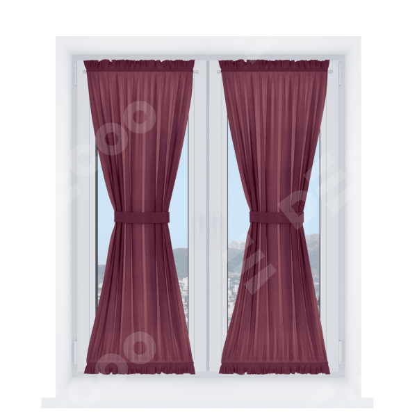 Штора «Песочные часы» производителя «Cortin», используется для створок окон и дверей, пошита из ткани вельвет бордовый, артикул ткани 85553.