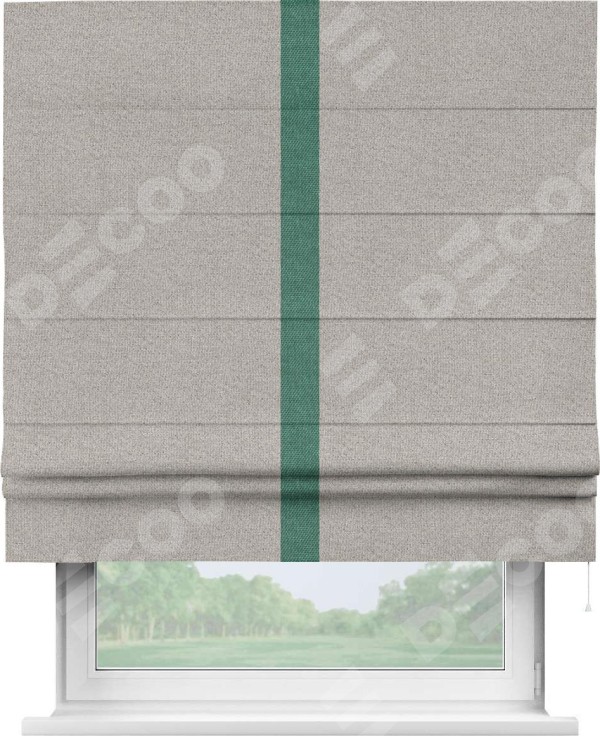 Римская штора «Кортин» для проема, лён димаут серо-бежевый с кантом Хайвэй