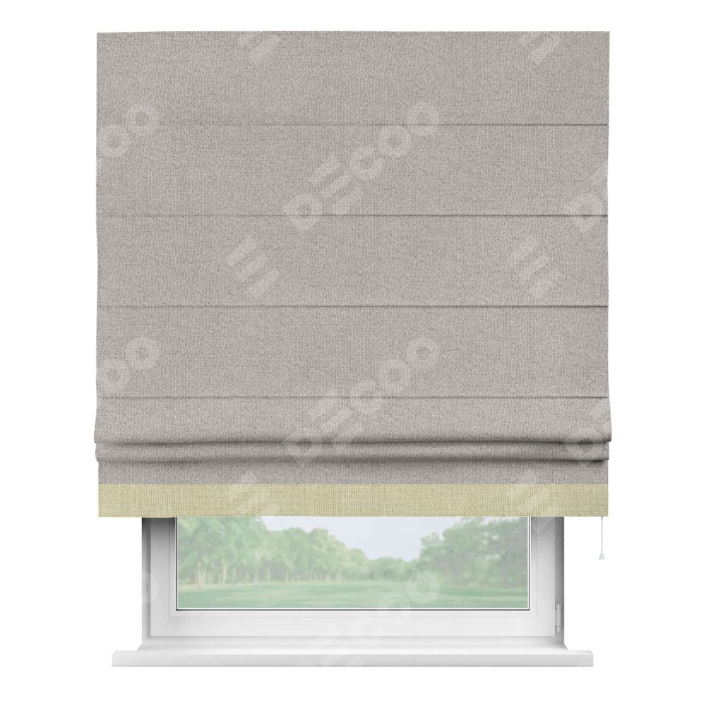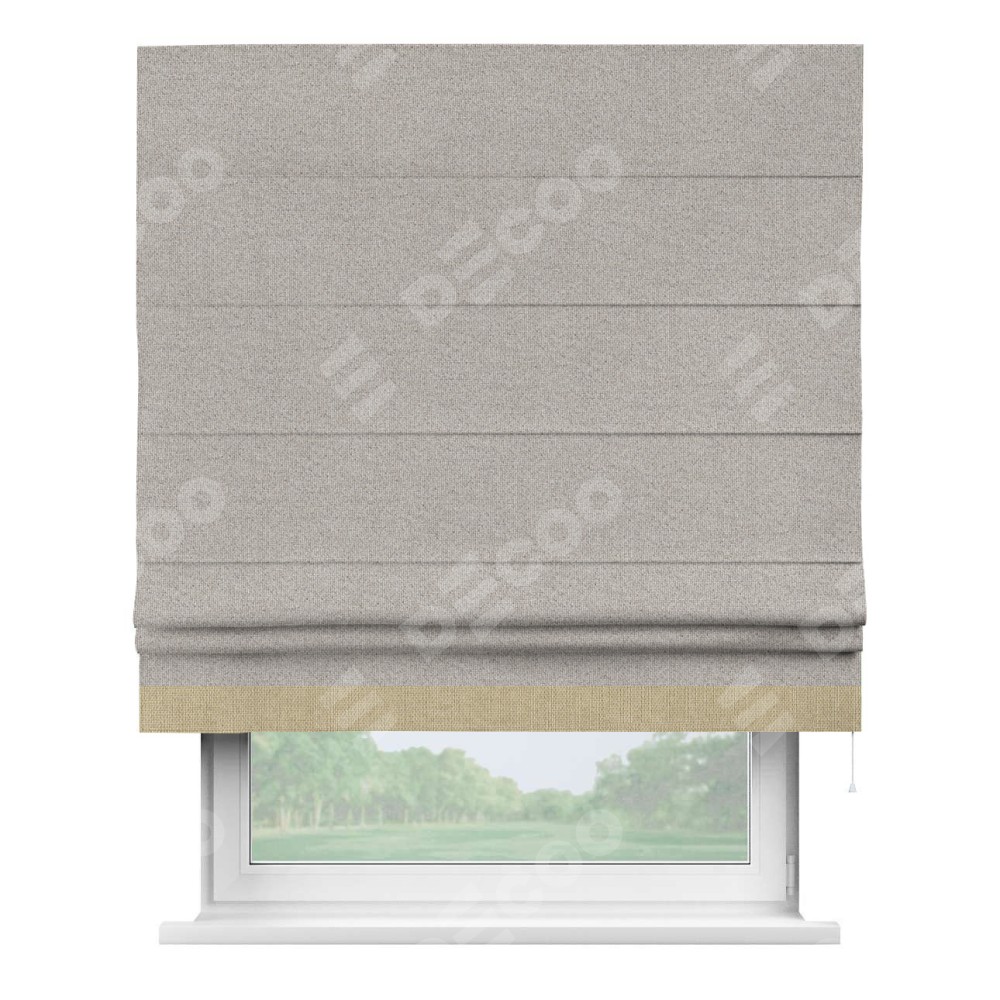 Римская штора «Кортин» для проема, лён димаут серо-бежевый с кантом Джестер