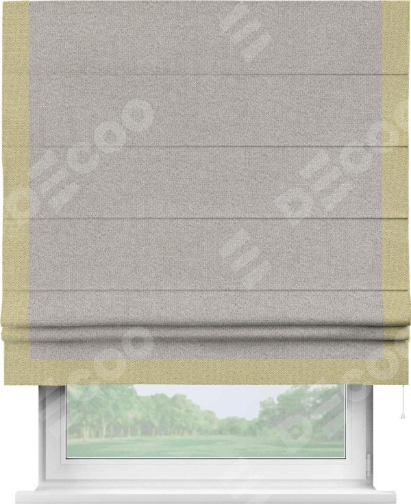 Римская штора «Кортин» для проема, лён димаут серо-бежевый с кантом Виктория