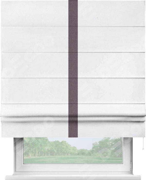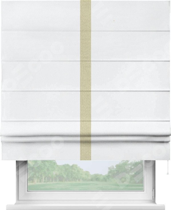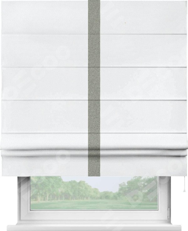Римская штора «Кортин» для проема, лён димаут белый с кантом Хайвэй