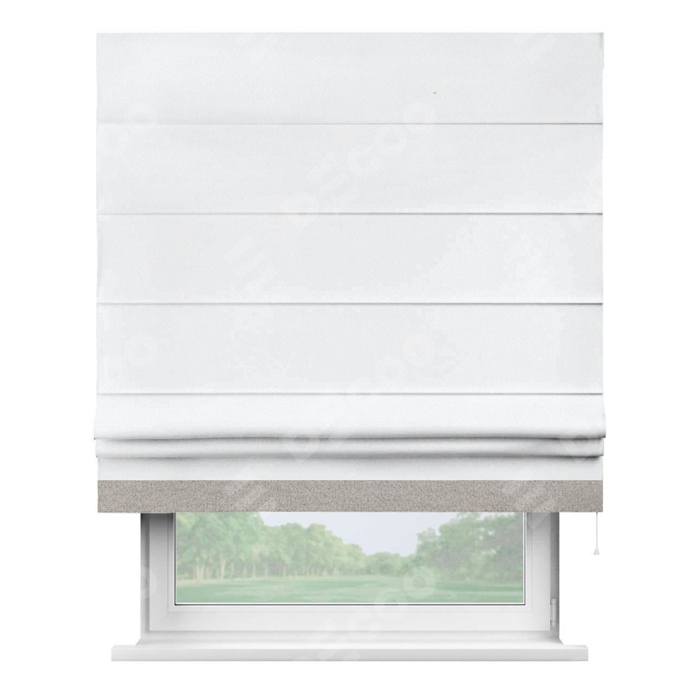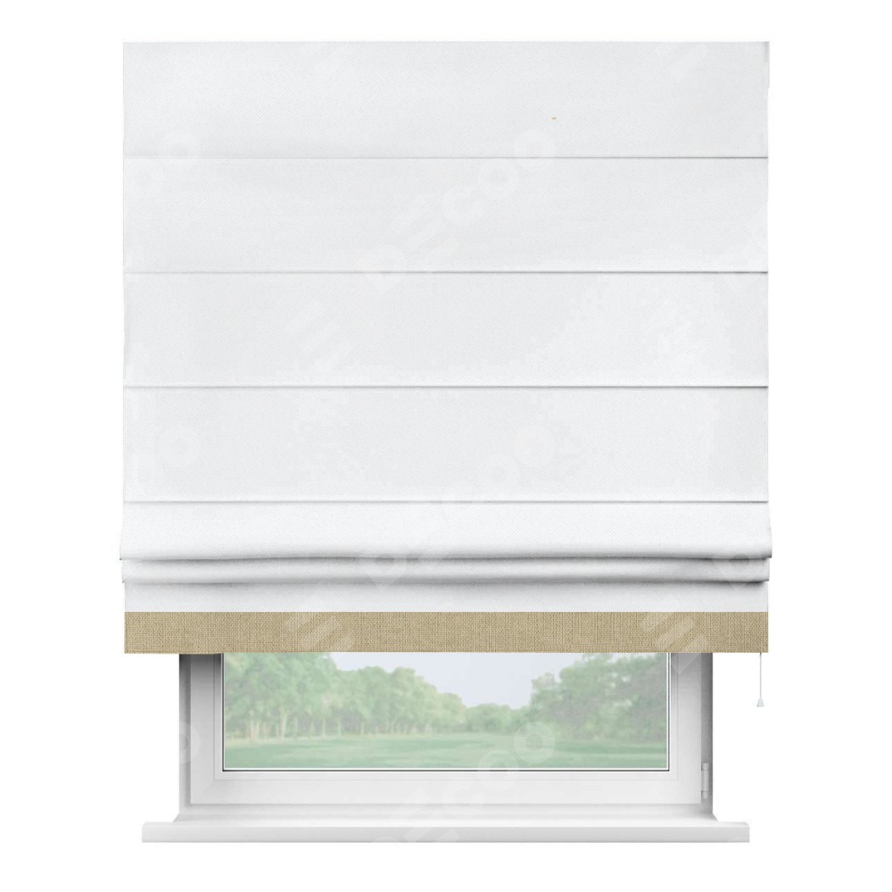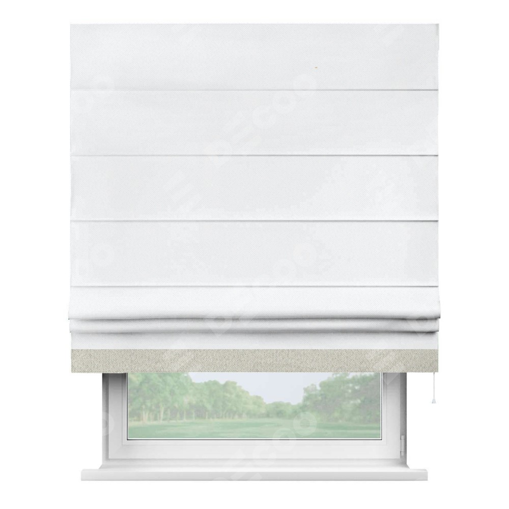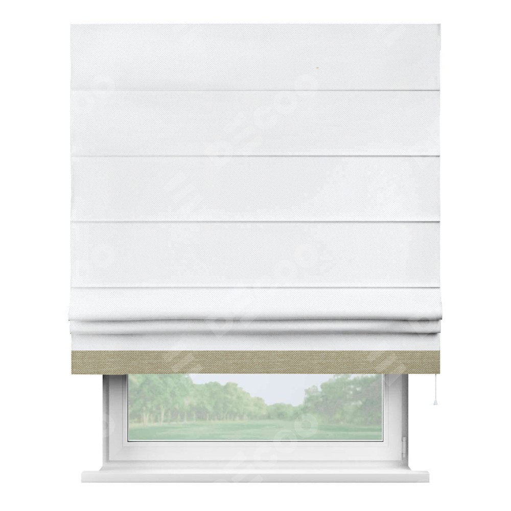 Римская штора «Кортин» для проема, лён димаут белый с кантом Джестер