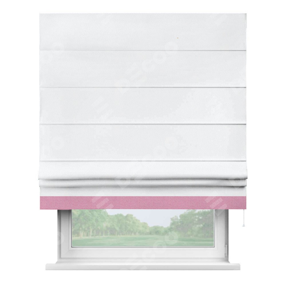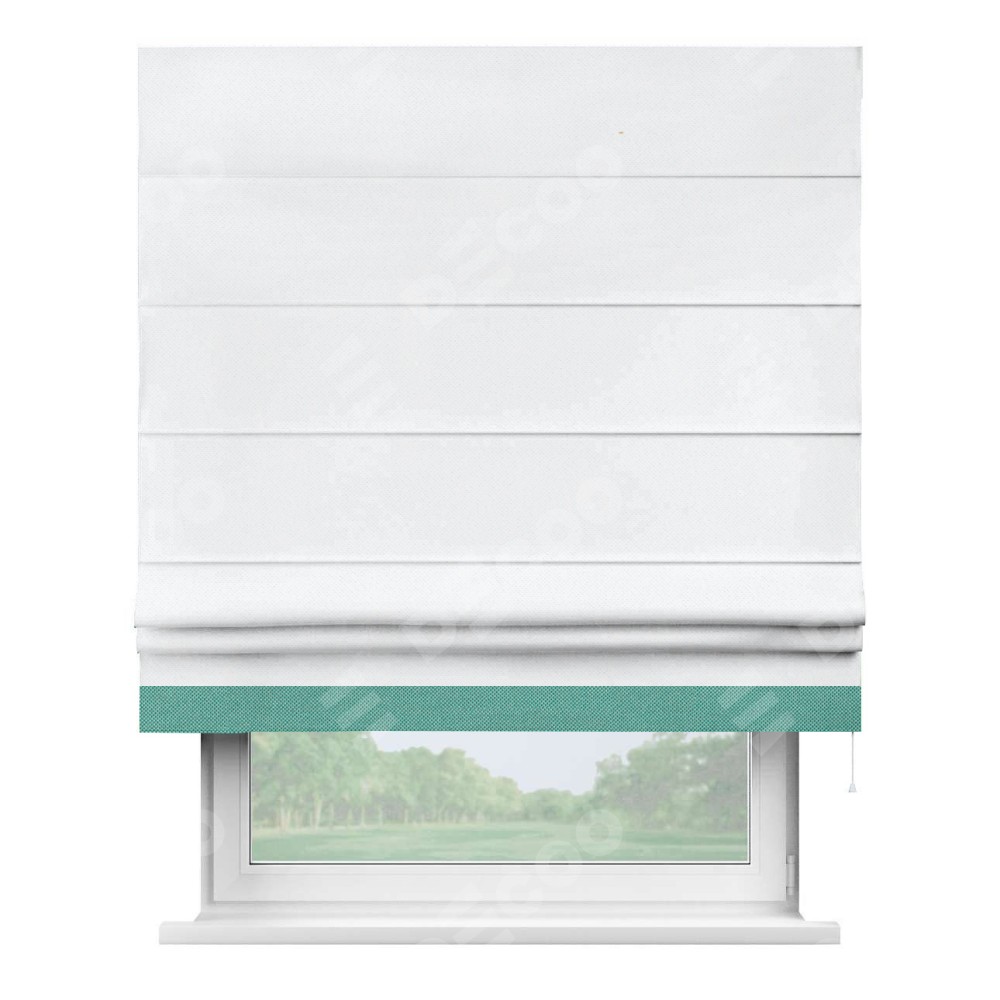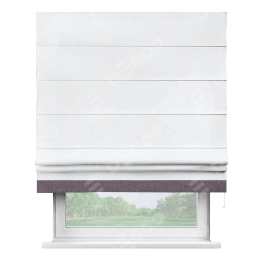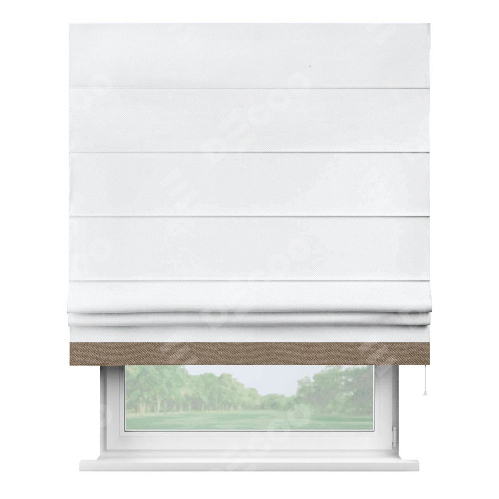 Римская штора «Кортин» для проема, лён димаут белый с кантом Джестер