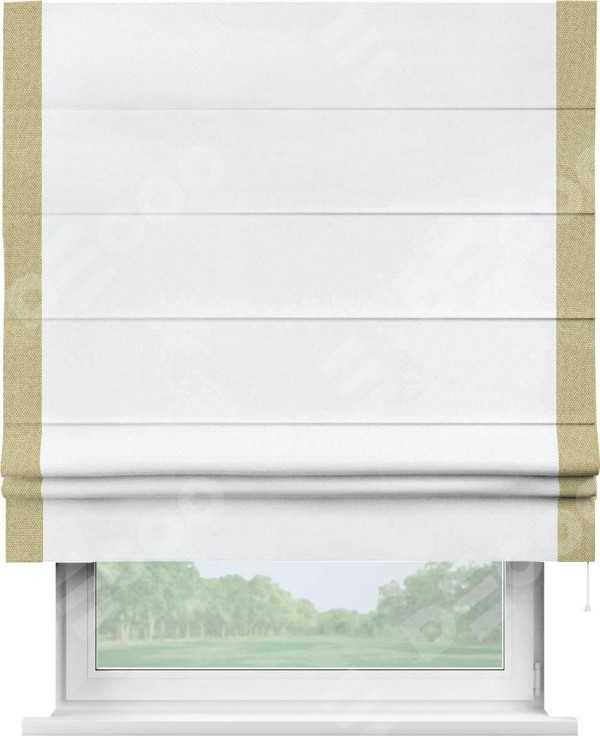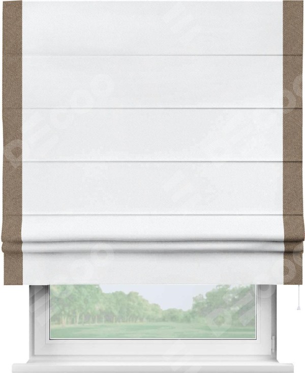 Римская штора «Кортин» для проема, лён димаут белый с кантом Стрим Дуо
