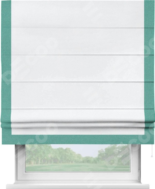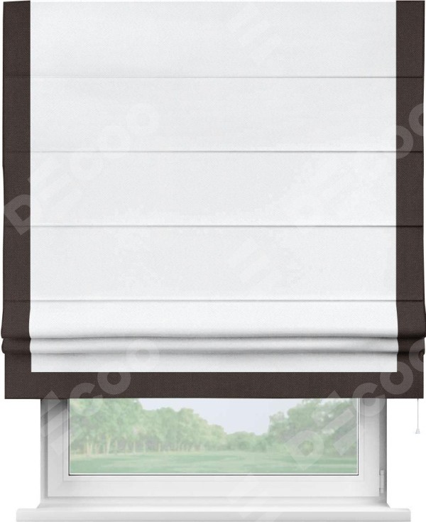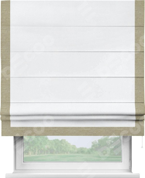 Римская штора «Кортин» для проема, лён димаут белый с кантом Виктория