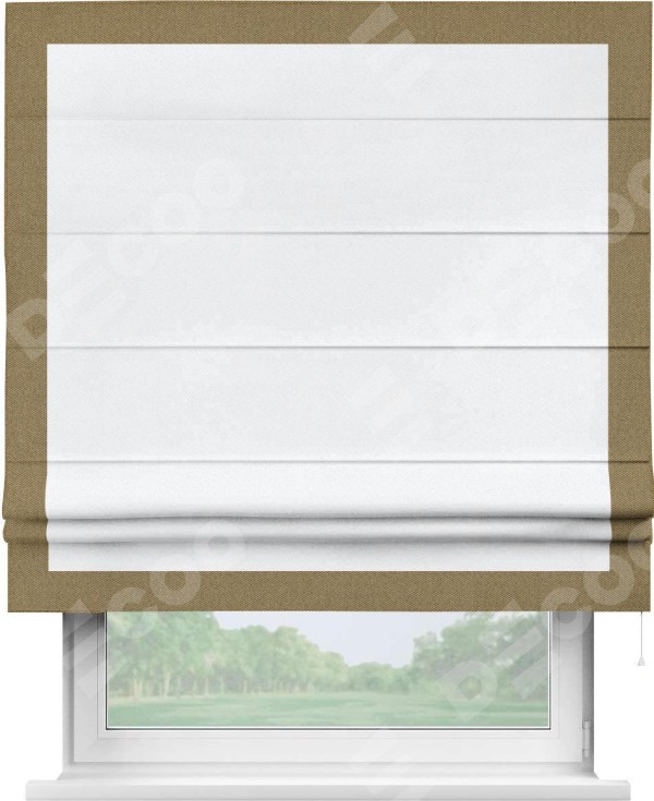 Римская штора «Кортин» для проема, лён димаут белый с кантом Чесс