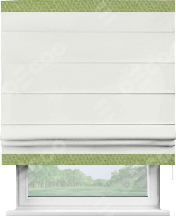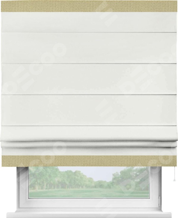 Римская штора «Кортин» для проема, лён димаут молочный с кантом Горизонт