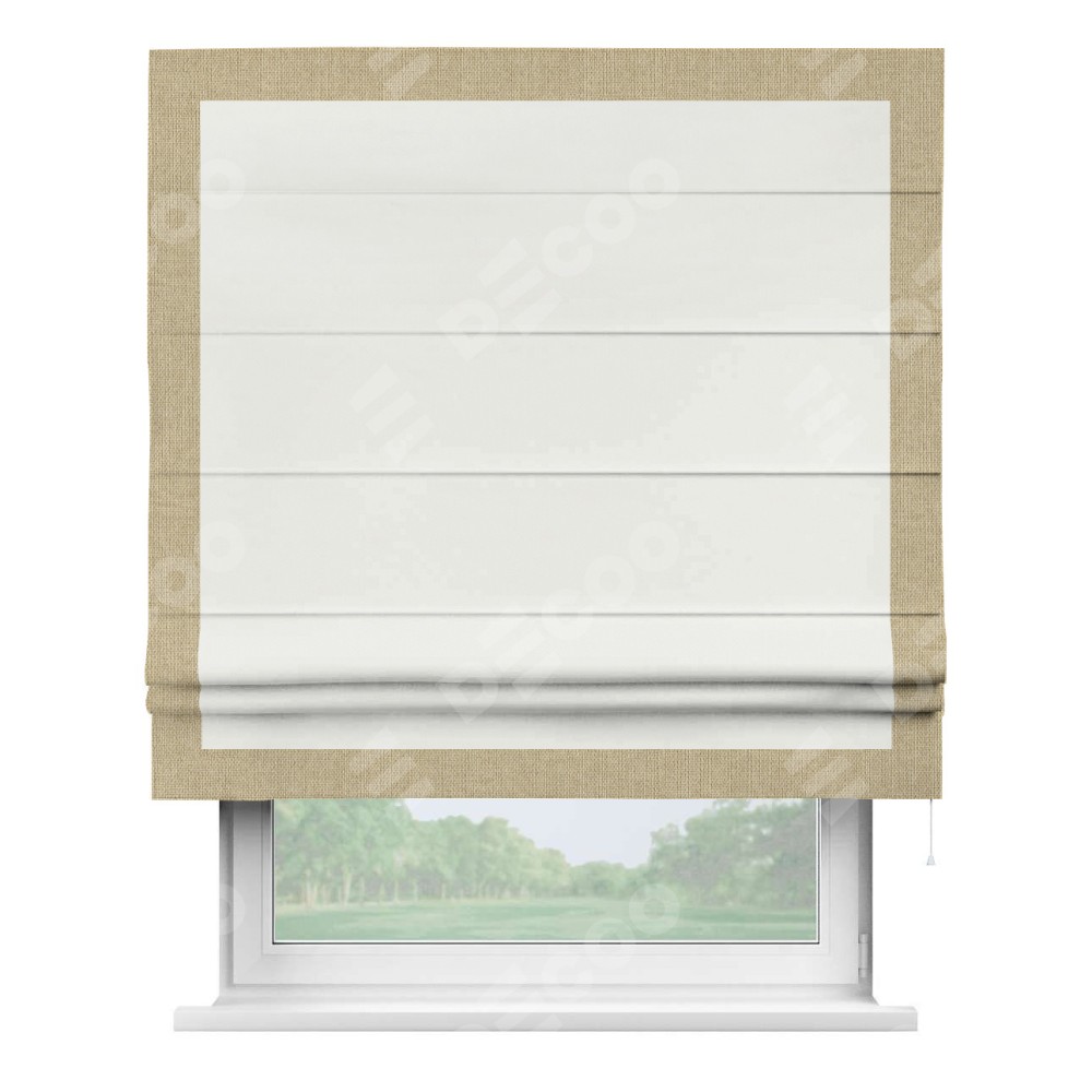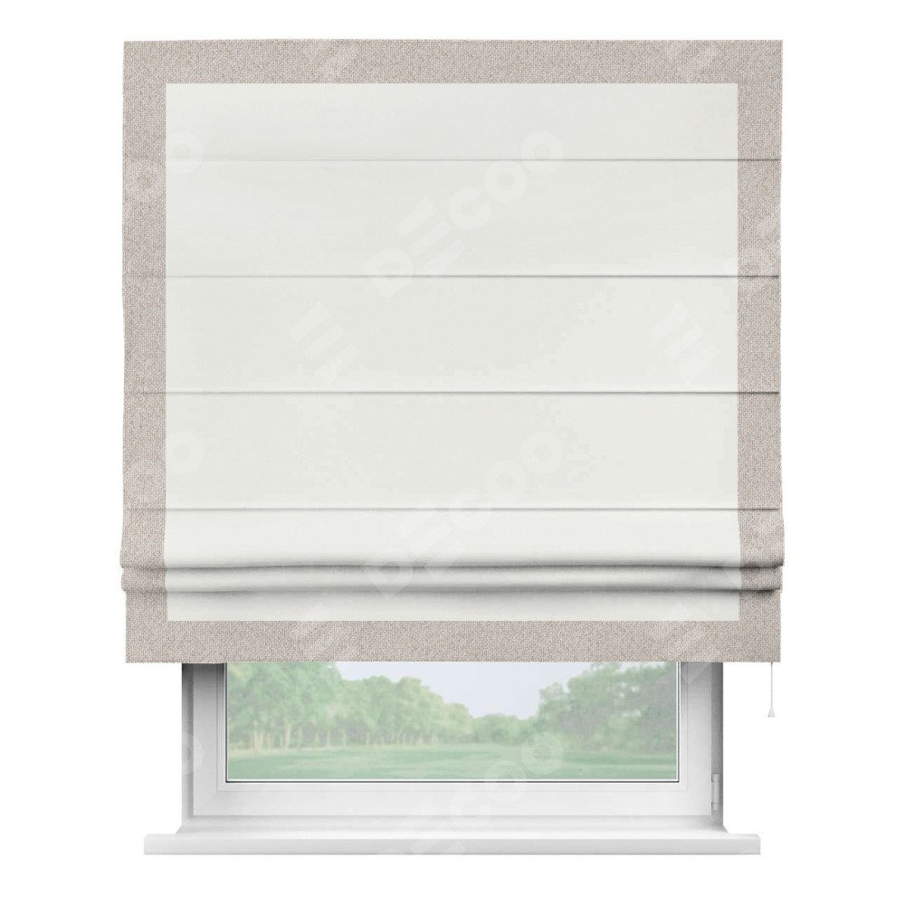 Классическая римская штора производителя «Cortin», пошита из ткани лён димаут молочный, артикул: 29. Имеет универсальный механизм и подходит для монтажа: на потолок, на стену и в нишу.