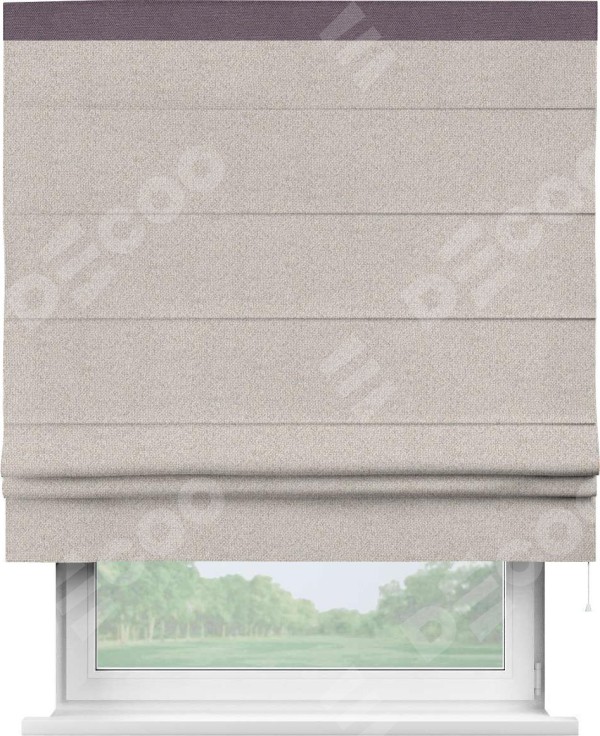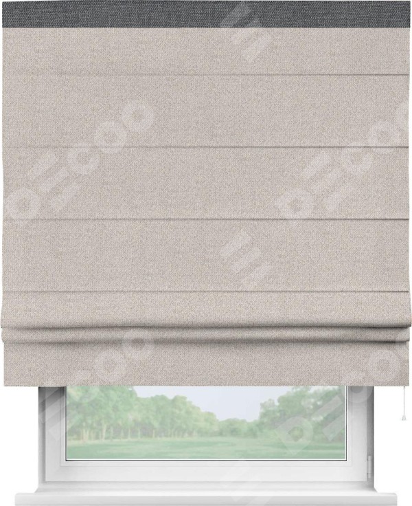 Римская штора «Кортин» для проема, лён димаут бежевый с кантом Кинг