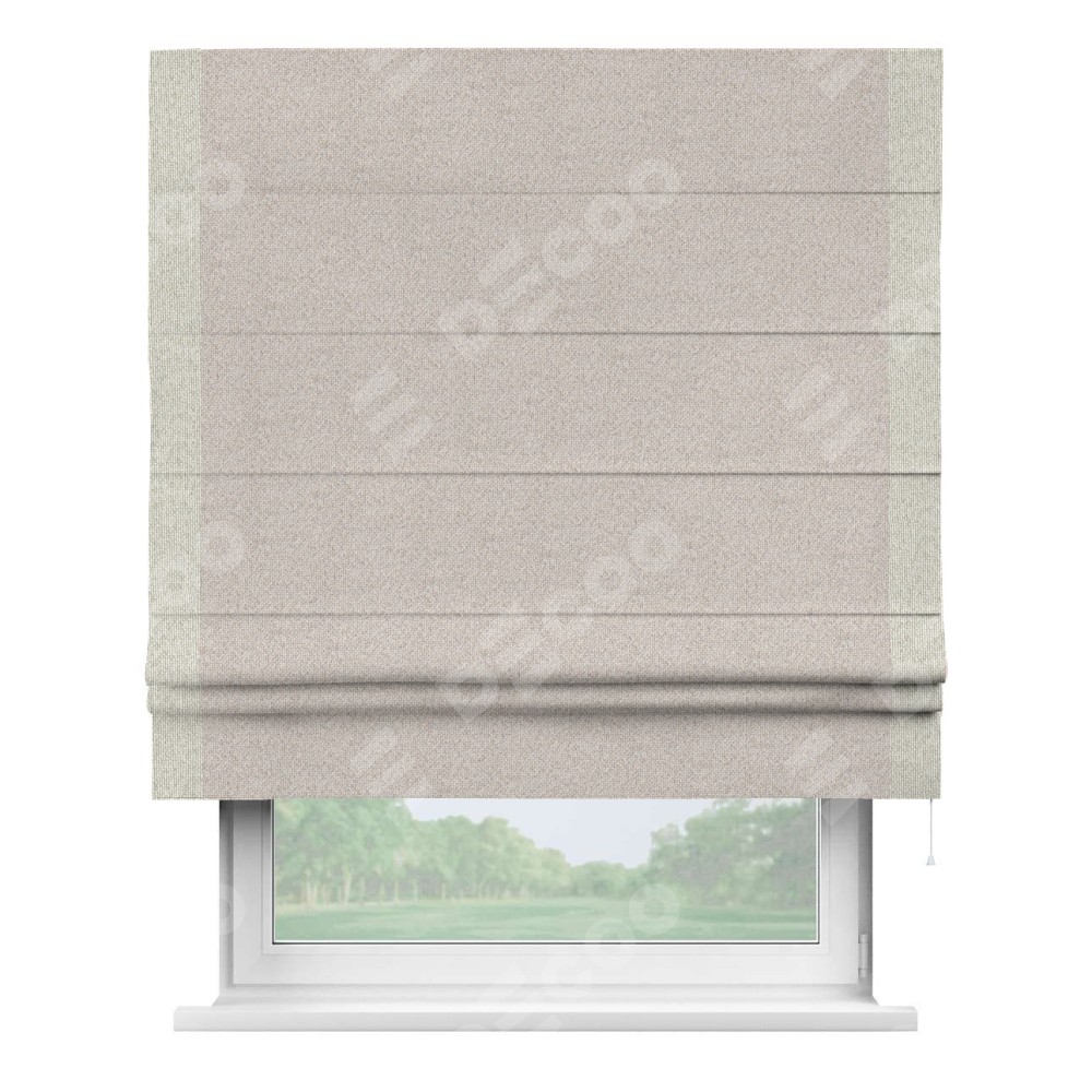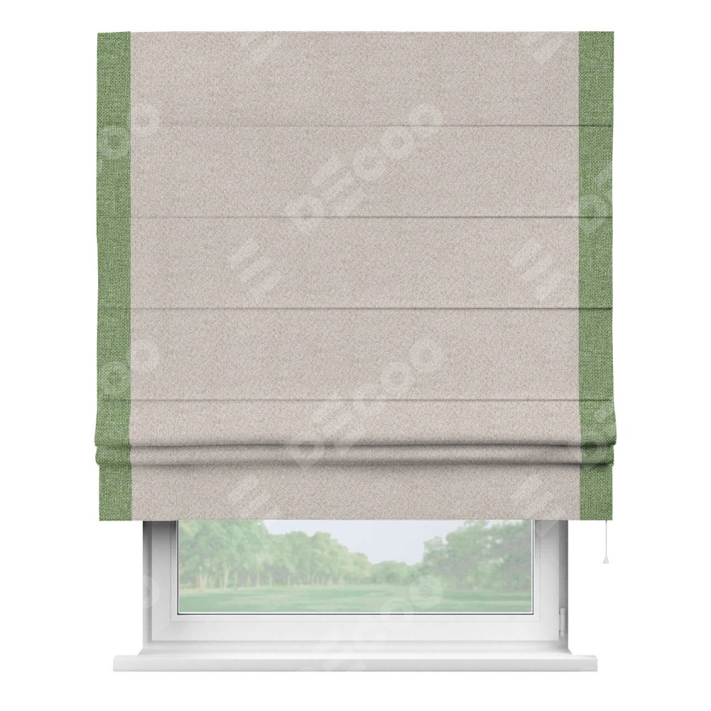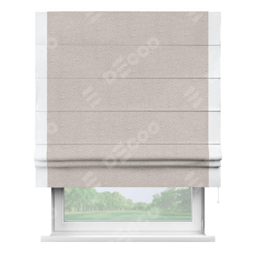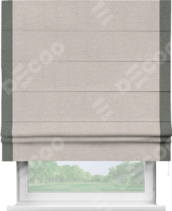 Римская штора «Кортин» для проема, лён димаут бежевый с кантом Стрим Дуо