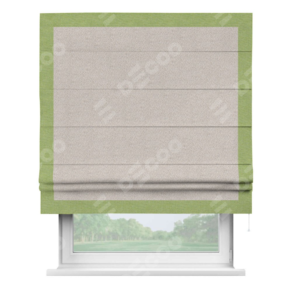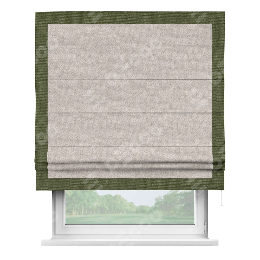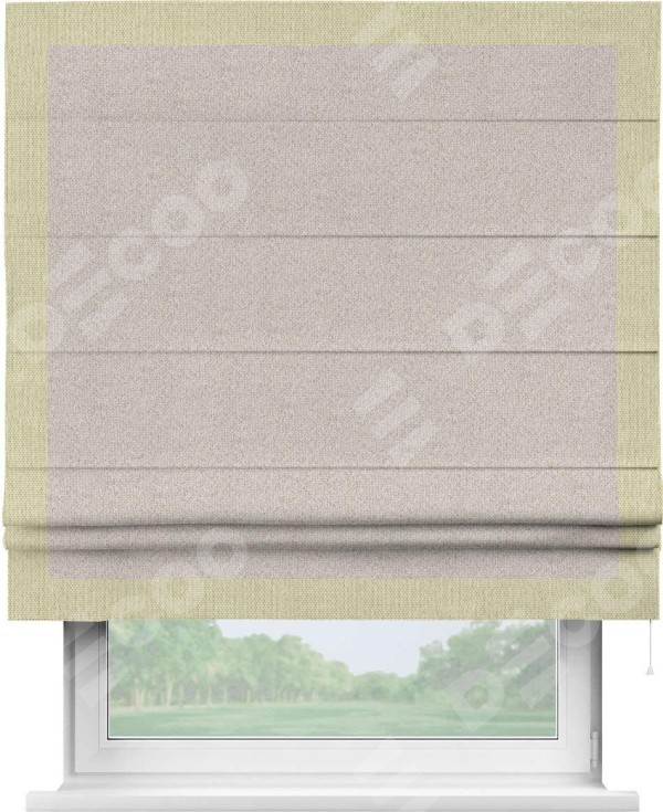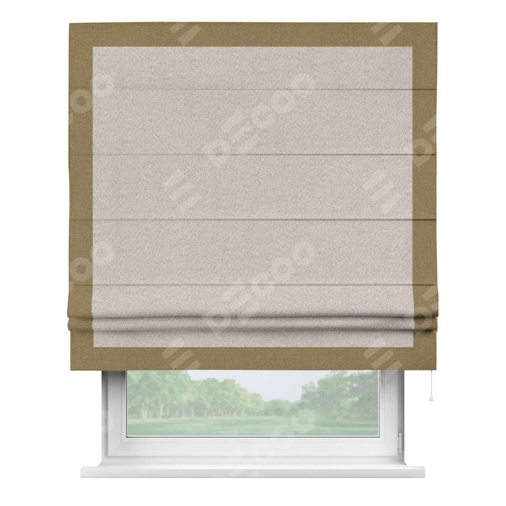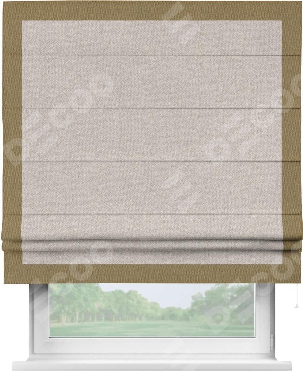 Римская штора «Кортин» для проема, лён димаут бежевый с кантом Чесс