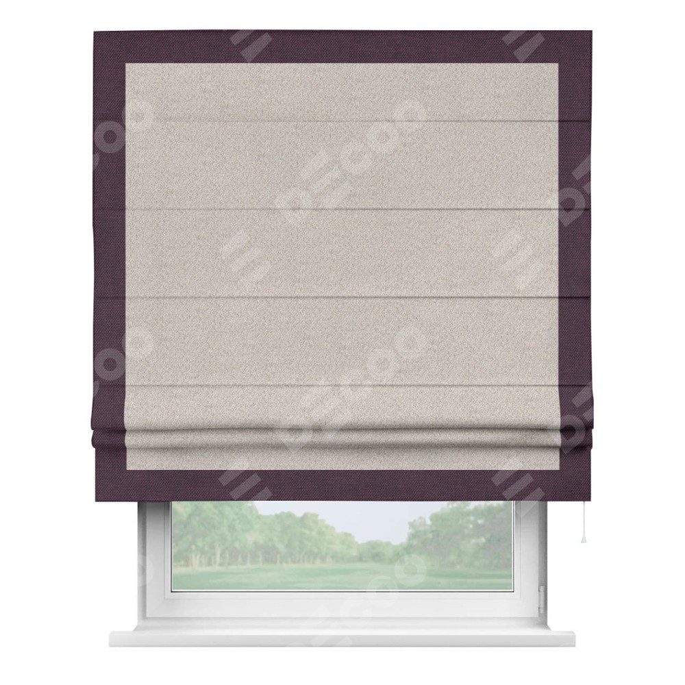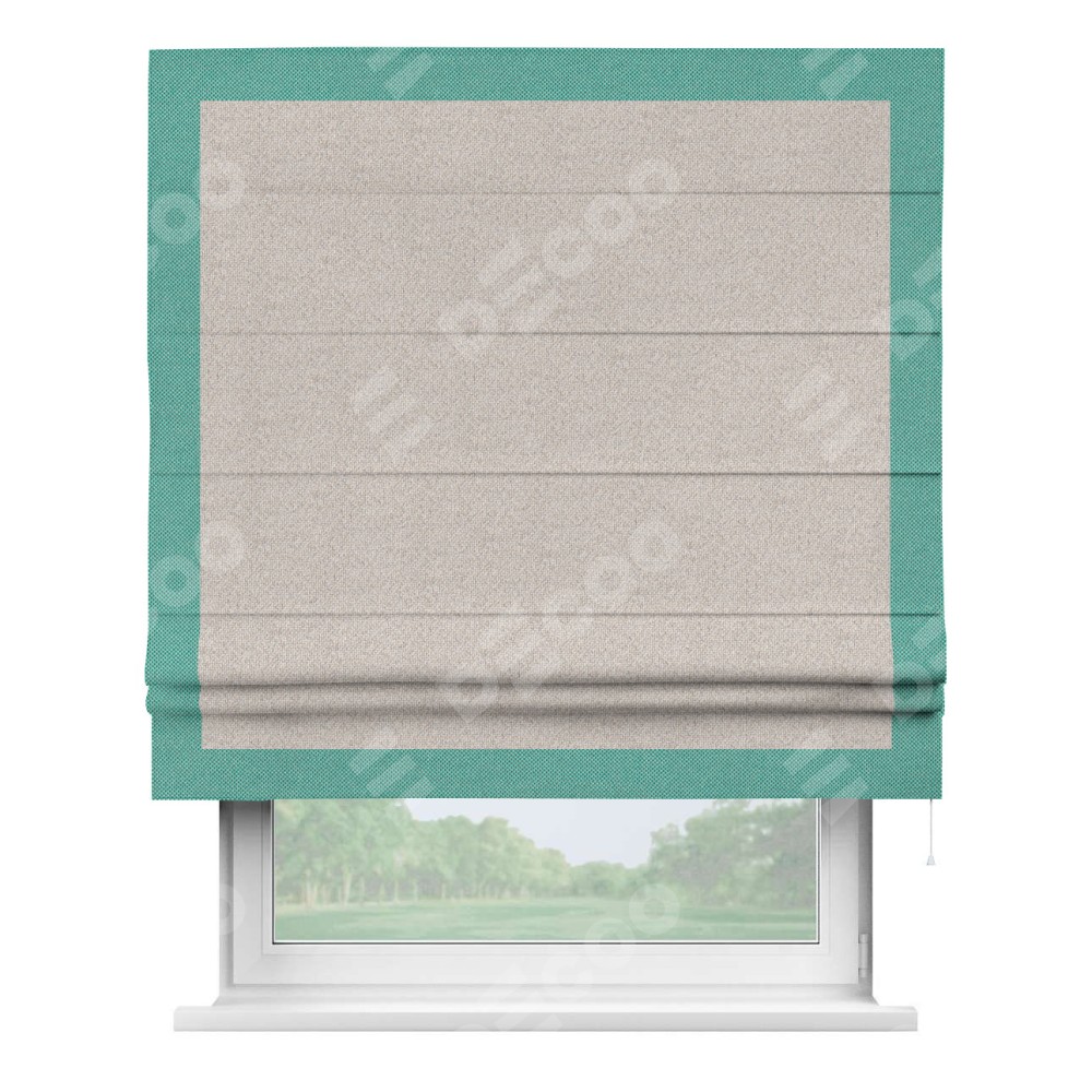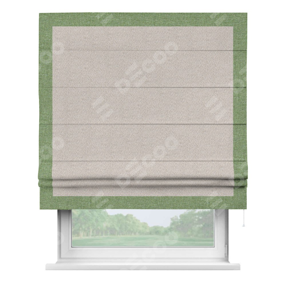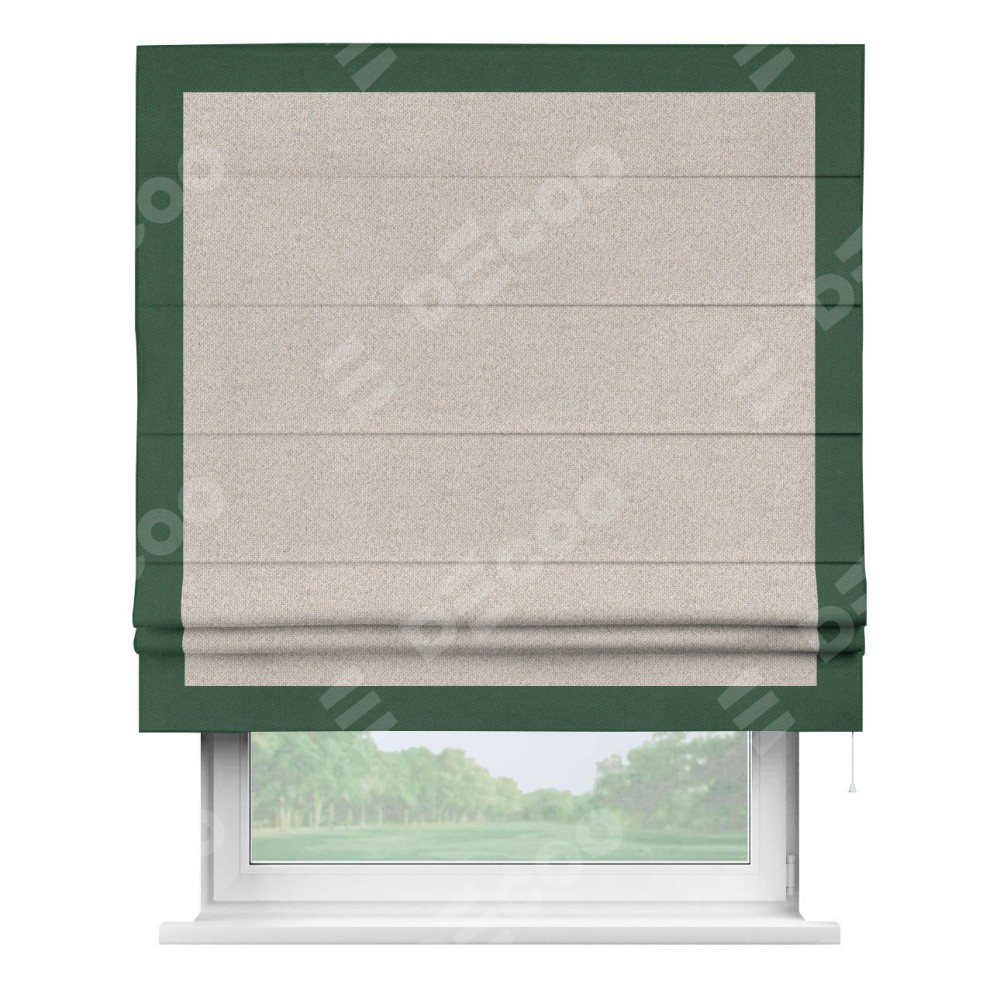 Римская штора «Кортин» для проема, лён димаут бежевый с кантом Чесс
