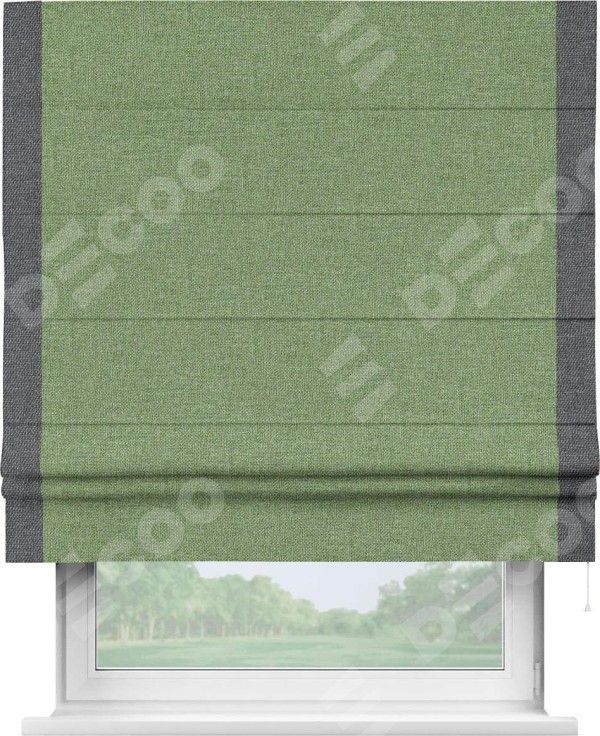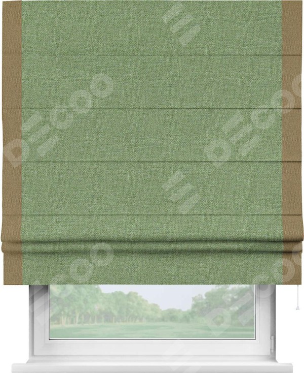 Римская штора «Cortin» для проёма, лён димаут светло-салатовый с кантом Стрим Дуо