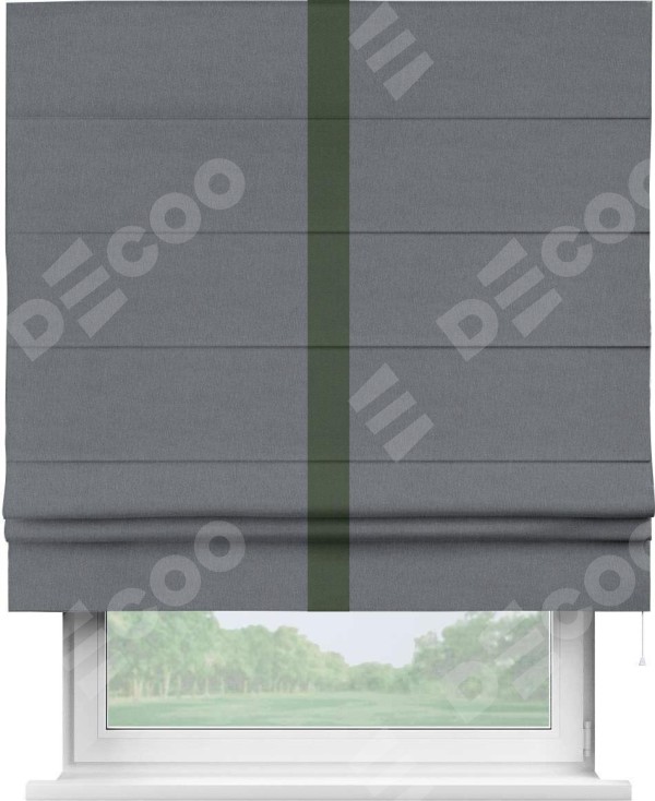 Римская штора «Кортин» с кантом Хайвэй, для проема, лён блэкаут тёмно-серый