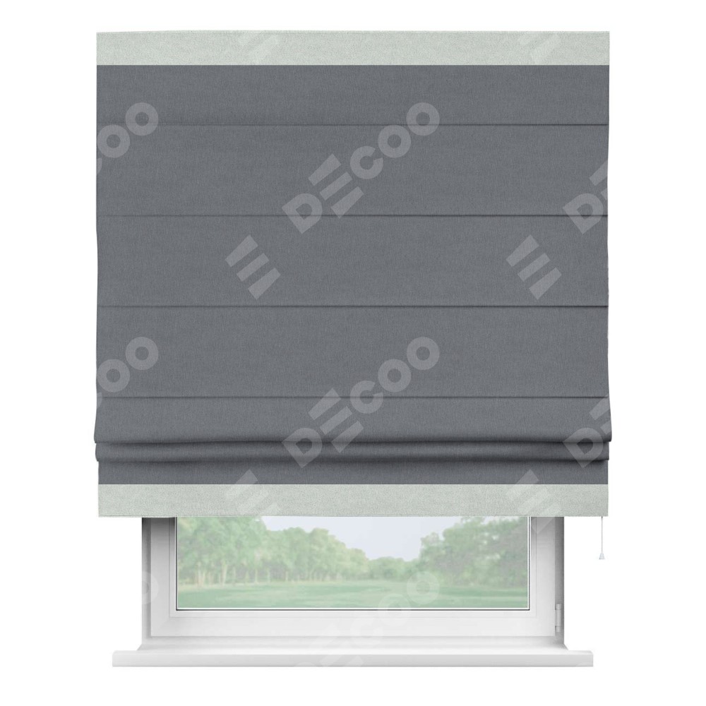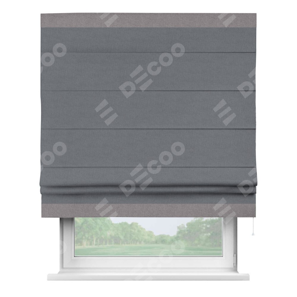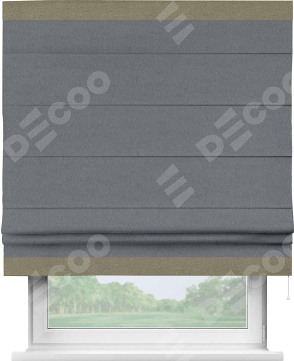 Римская штора «Кортин» с кантом Горизонт, для проема, лён блэкаут тёмно-серый
