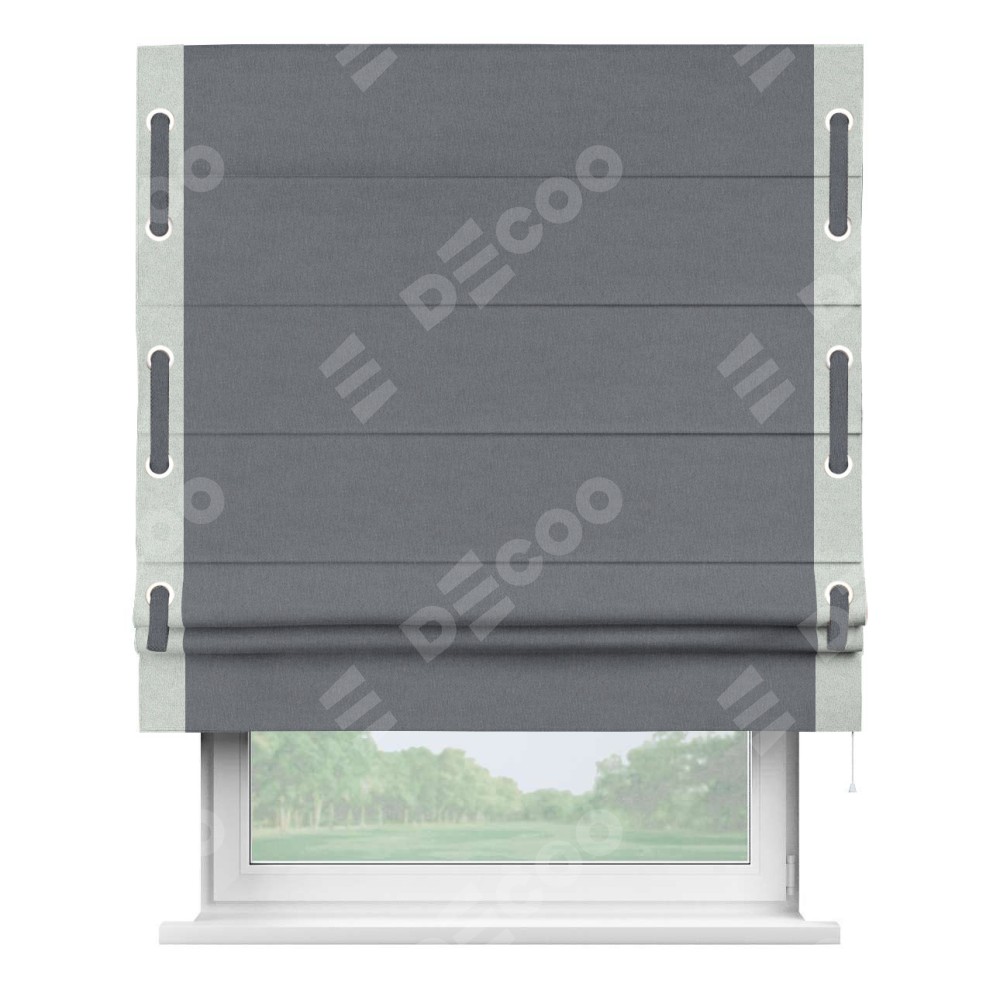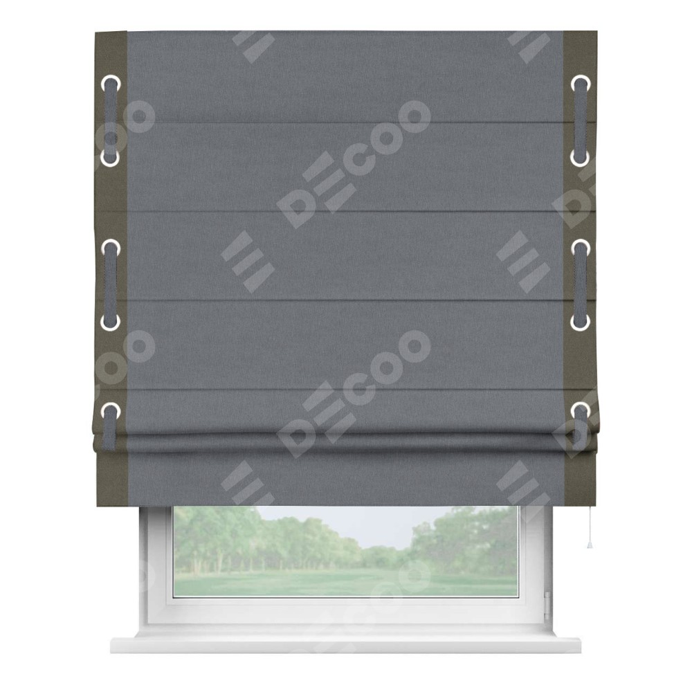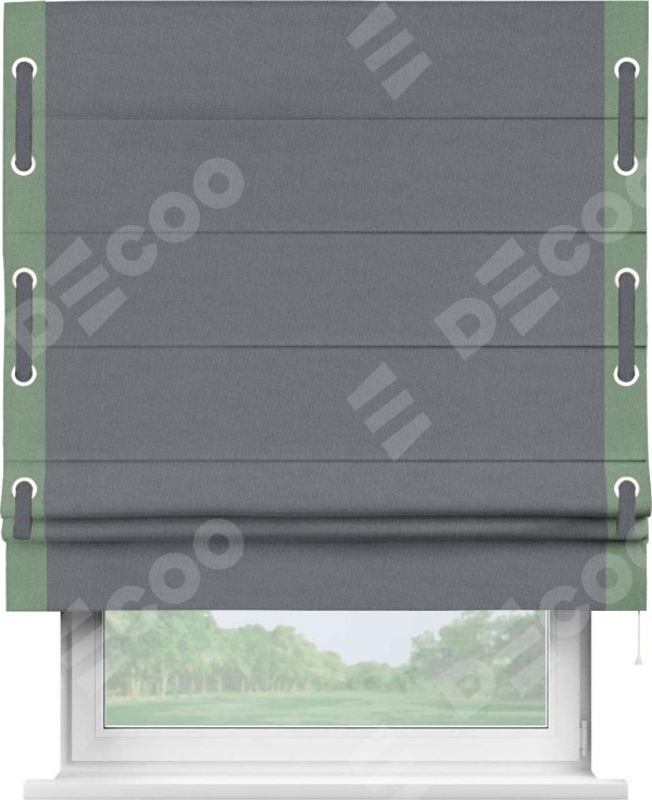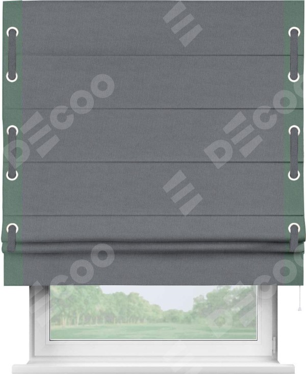 Римская штора «Кортин» с кантом Стрим Дуо (люверсы с пояском), для проема, лён блэкаут тёмно-серый