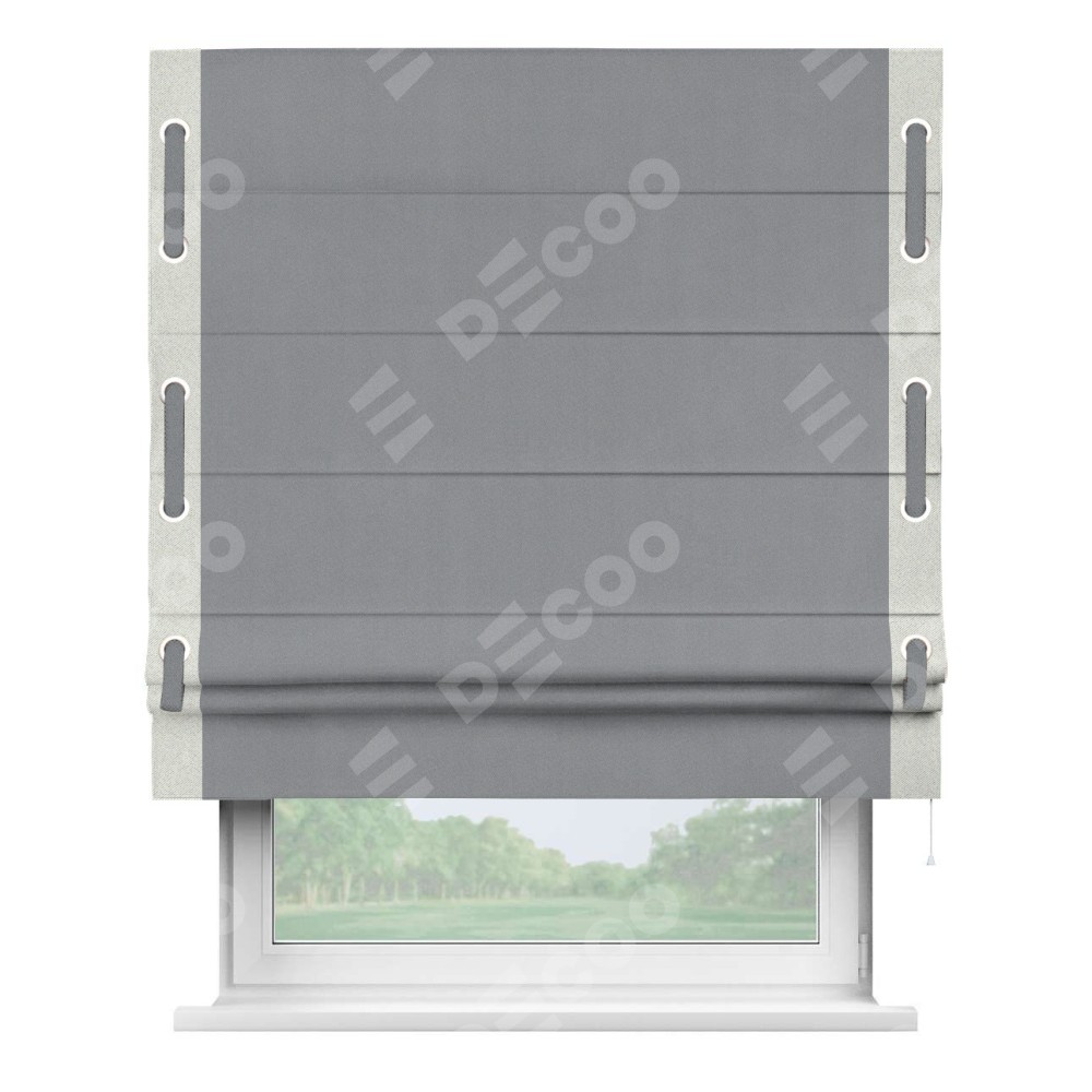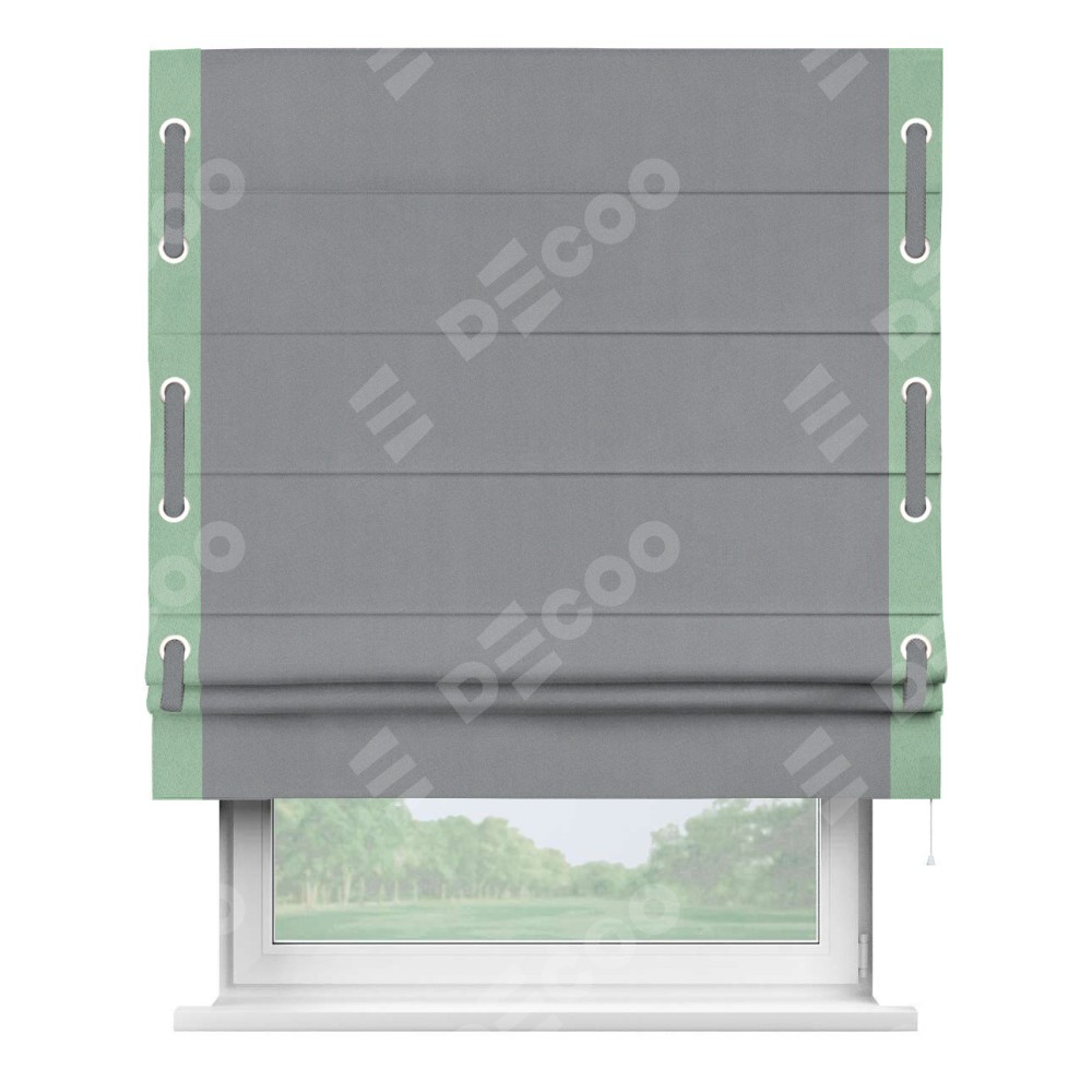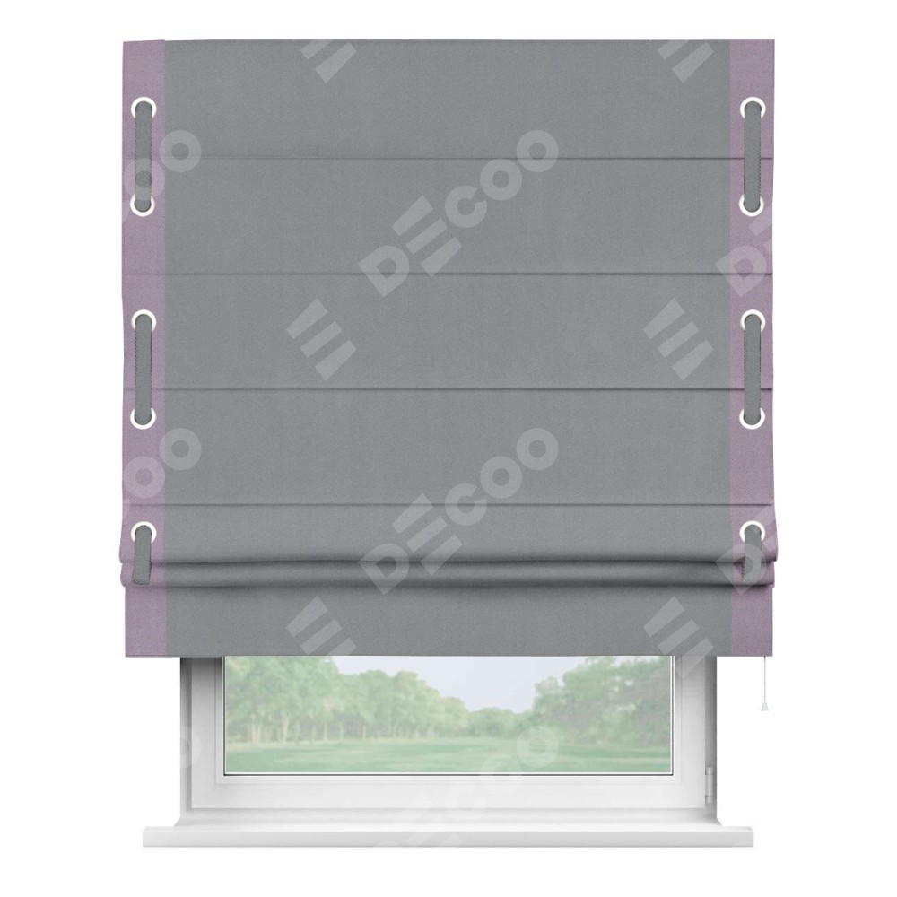 Римская штора «Кортин» для проема, блэкаут однотонный серый с кантом Стрим Дуо (люверсы с пояском)